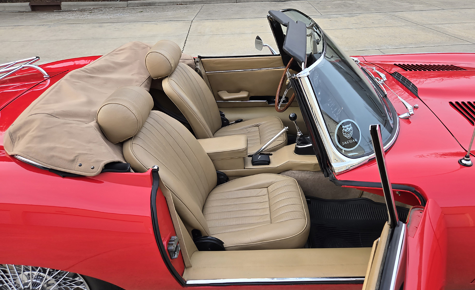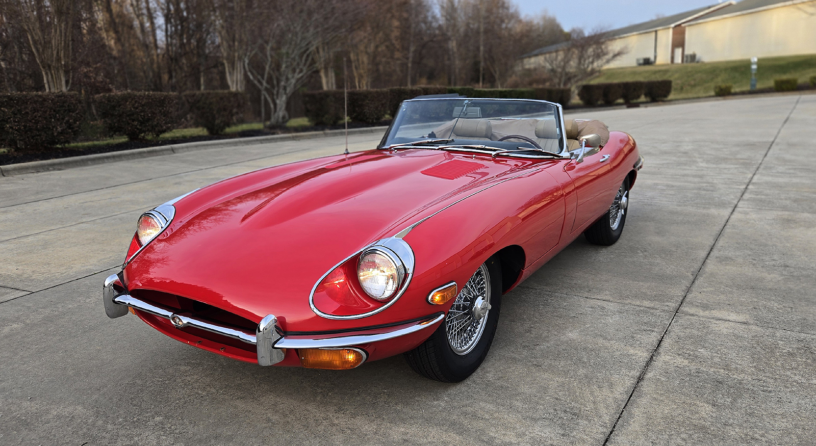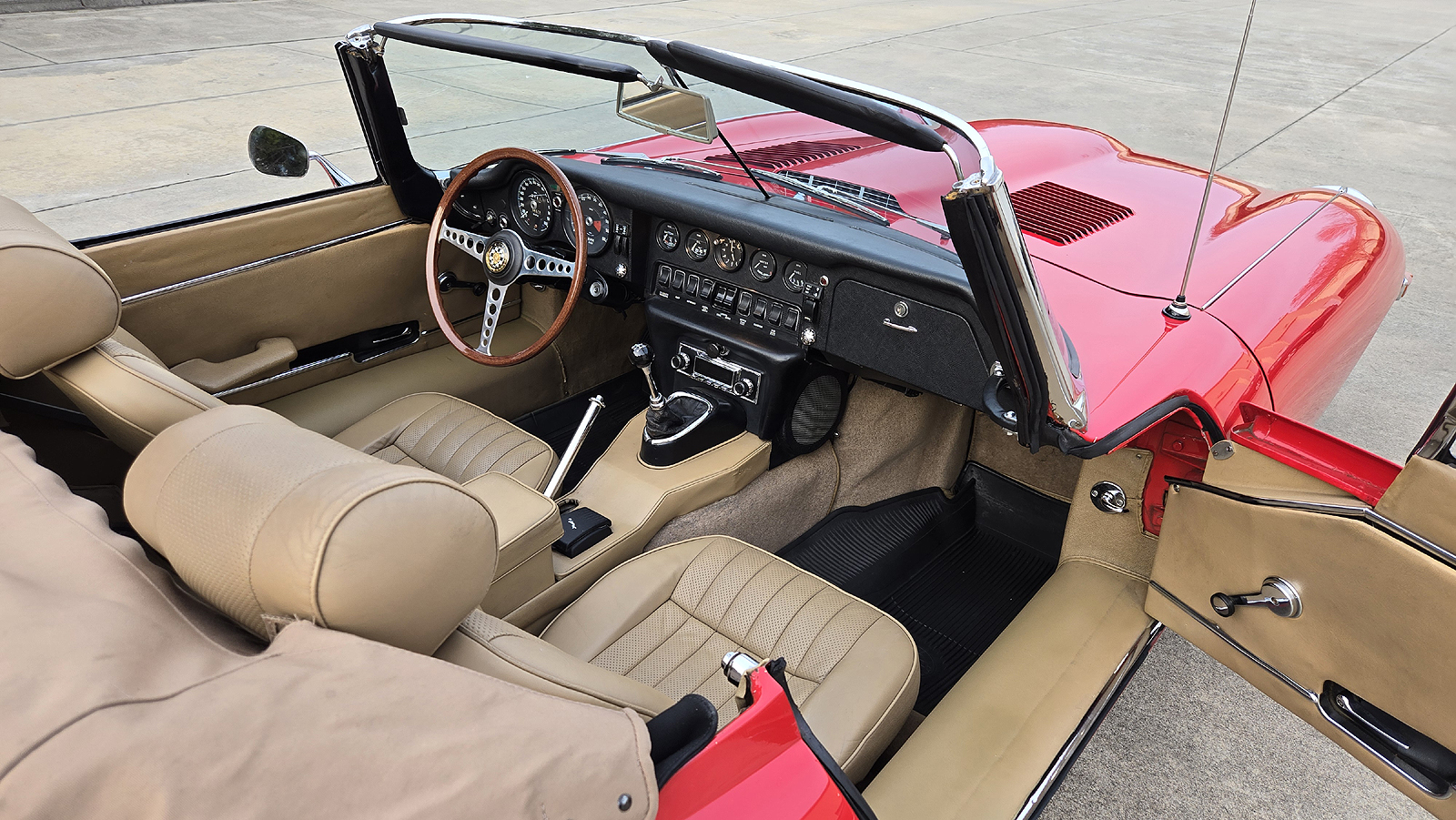 This great Jaguar E-type Series 2 Roadster was manufactured on January 25th of 1970 and was dispatched on February 1970. It is a matching numbers car and currently finished is Signal Red with Tan interior.