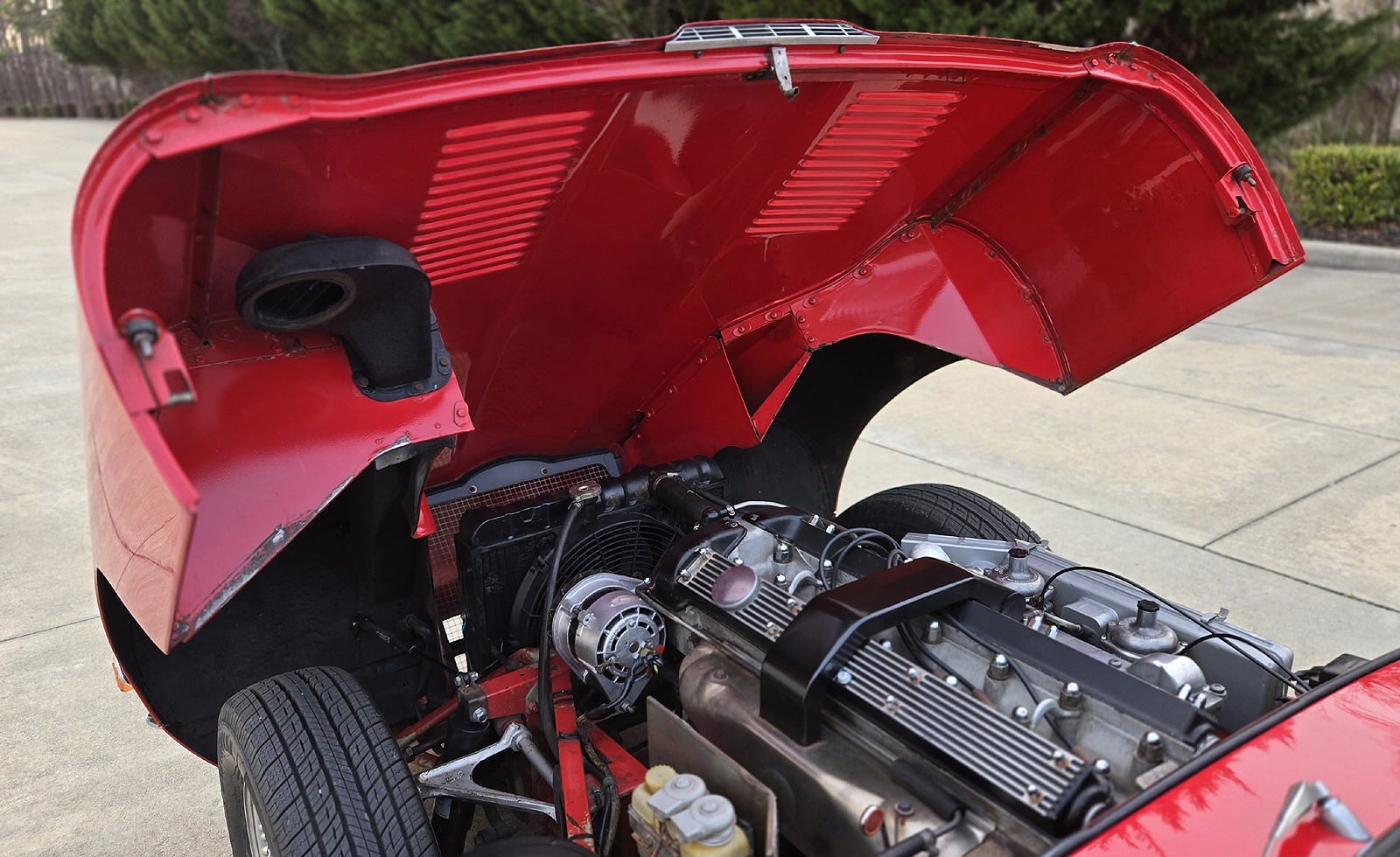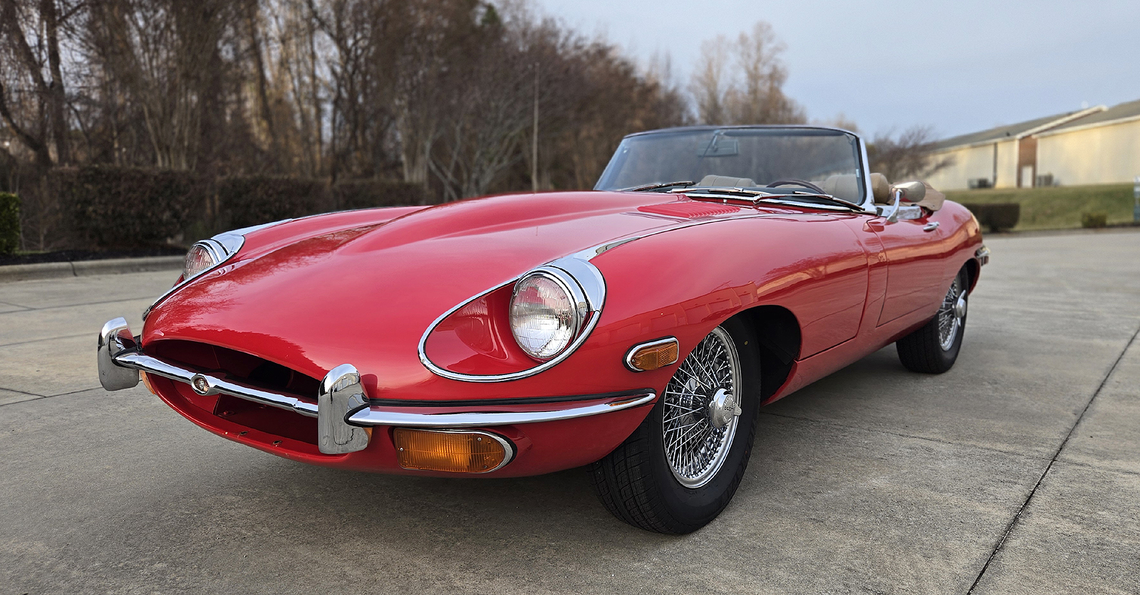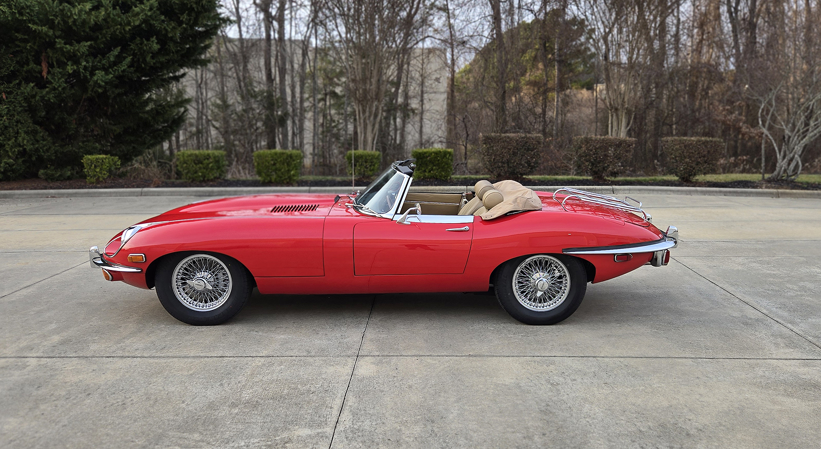 This great Jaguar E-type Series 2 Roadster was manufactured on January 25th of 1970 and was dispatched on February 1970. It is a matching numbers car and currently finished is Signal Red with Tan interior.