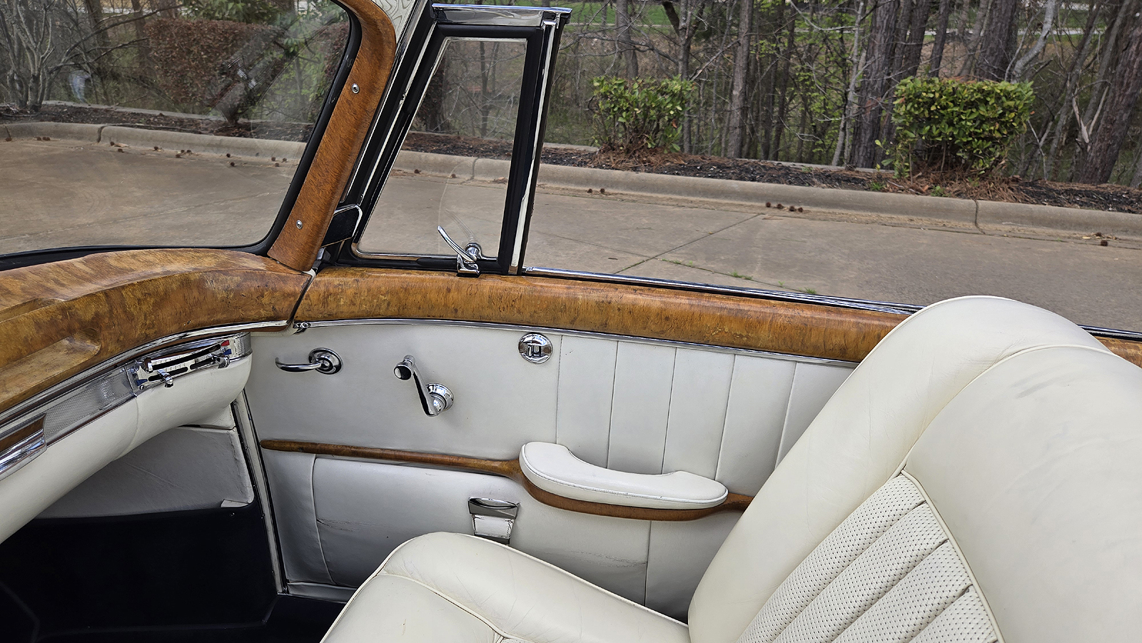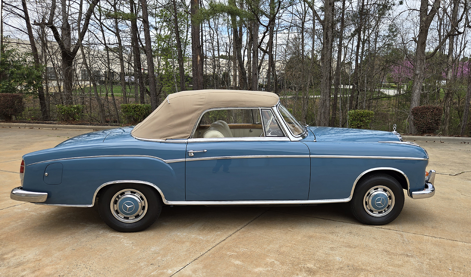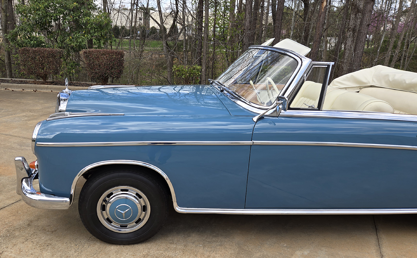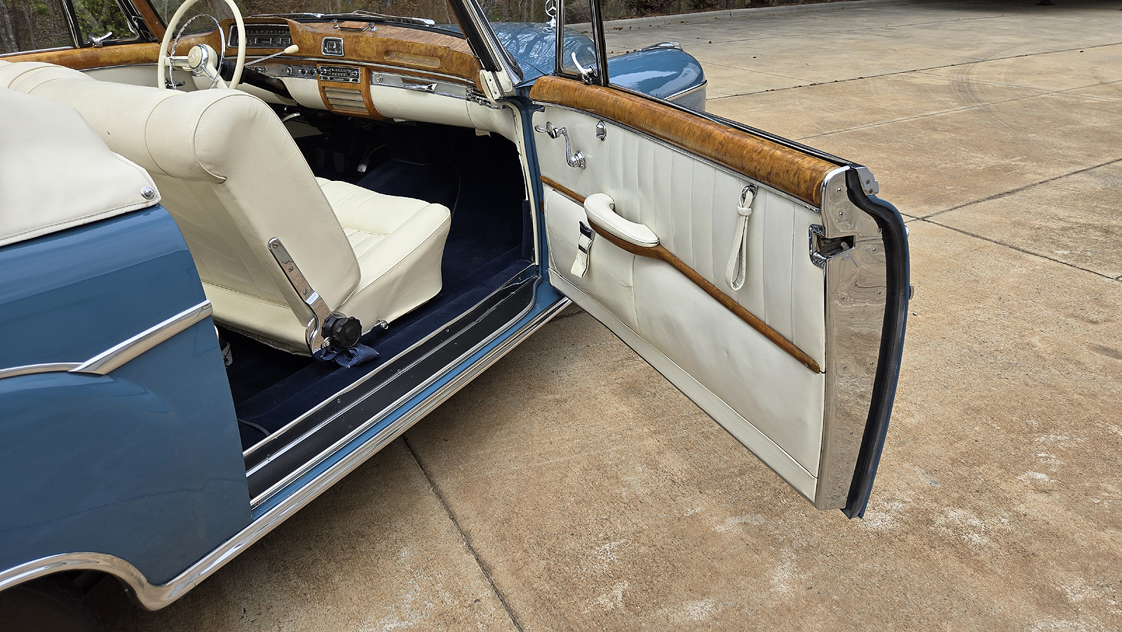 We drove this car extensively and about 400 plus miles, showing and driving the car at the 2025 Shelton Vineyards Mercedes-Benz show at highways speeds of 80mph. In addition, driving it to local car gatherings, as well as driving it around town. It is exceptional to drive. The column 4-speed shifter engages perfectly, and the clutch feels great with no shutter. The engine is quiet as can be with no valve train noises or unusual noises. In addition, the car has excellent power and can keep up with modern traffic but to be forewarned this car attracts a lot of attention. The power steering also feels strong and the car drives straight and does not wonder going down the road at all. This Ponton holds temperature well and the cream seats keep the car cool. The brakes on this car stop straight, as they should and it does not pull in either direction. The soft top has a nice zip outside window which provides a nice air floor when driving with the convertible top. The seats in this car are so unbelievably comfortable, so that when you are driving you actually forget that you are driving in a nearly 70-year-old Mercedes-Benz. There is adequate room for 4 adults in this car as well. This wonderful Mercedes-Benz 220S Cabriolet can be shown, but it is a high-level driver/show car and is a great driver’s car as it really shines nicely on the road. It needs and should be driven as all our cars need to be. The next owner will be sure to have plenty of miles of driving enjoyment and touring with this exceptional 1959 Mercedes 220S Cabriolet “Ponton.”