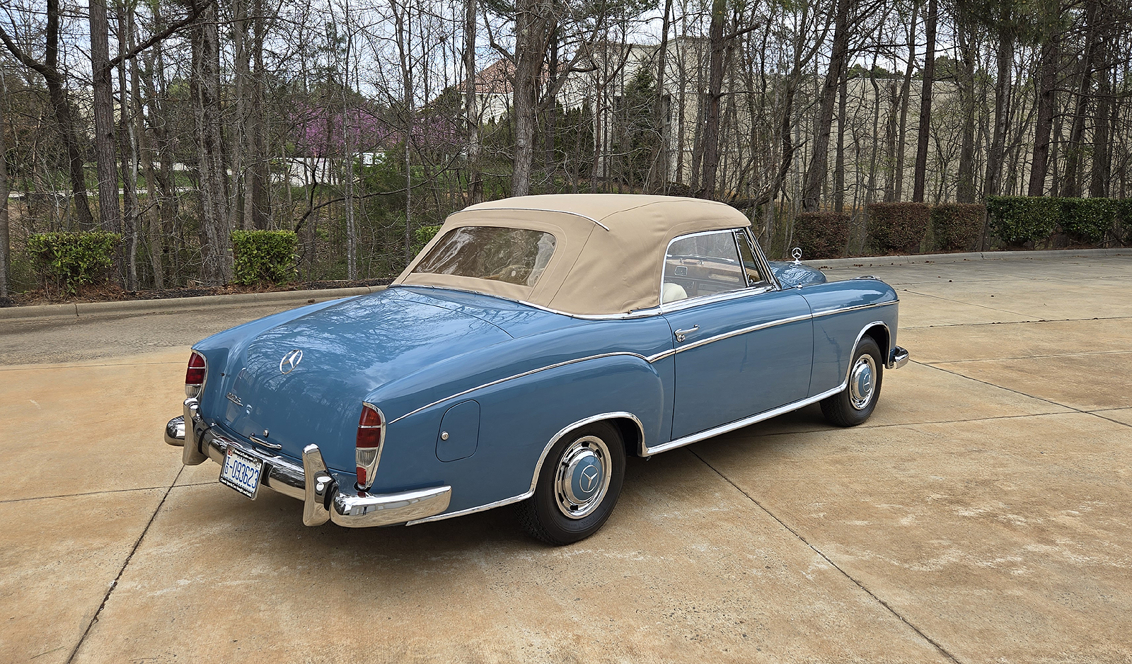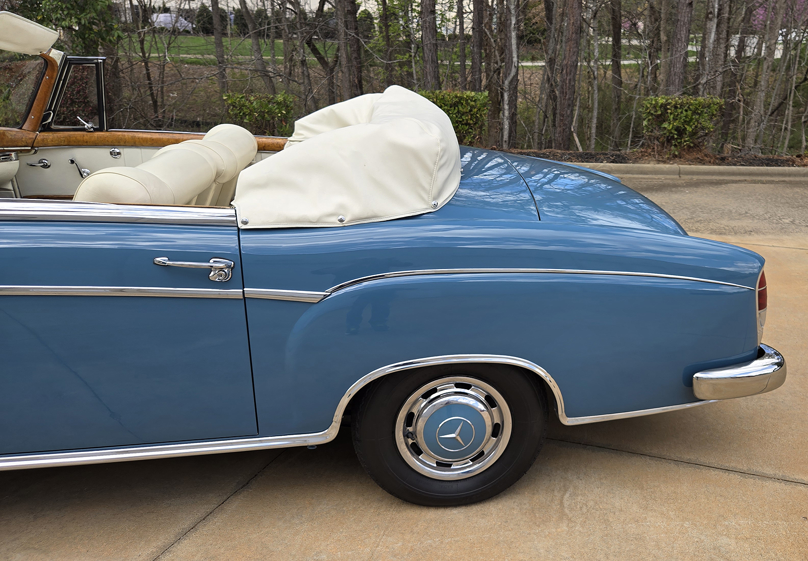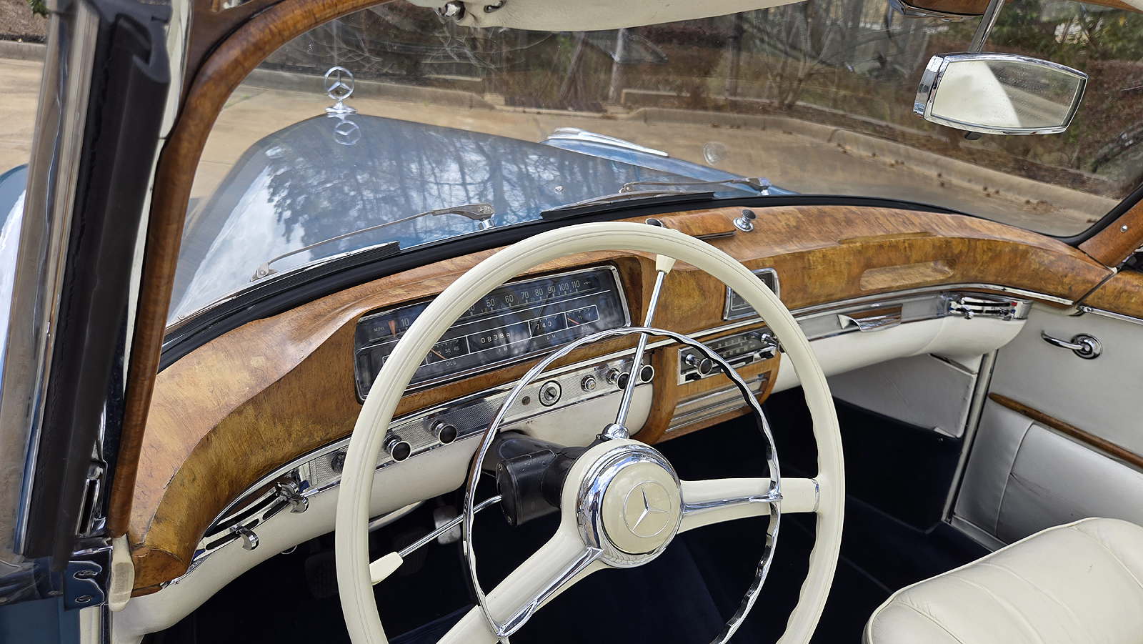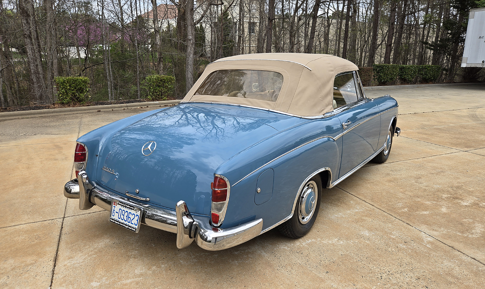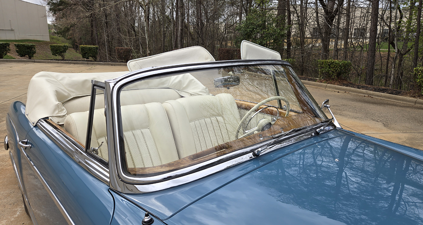 We drove this car extensively and about 400 plus miles, showing and driving the car at the 2025 Shelton Vineyards Mercedes-Benz show at highways speeds of 80mph. In addition, driving it to local car gatherings, as well as driving it around town. It is exceptional to drive. The column 4-speed shifter engages perfectly, and the clutch feels great with no shutter. The engine is quiet as can be with no valve train noises or unusual noises. In addition, the car has excellent power and can keep up with modern traffic but to be forewarned this car attracts a lot of attention. The power steering also feels strong and the car drives straight and does not wonder going down the road at all. This Ponton holds temperature well and the cream seats keep the car cool. The brakes on this car stop straight, as they should and it does not pull in either direction. The soft top has a nice zip outside window which provides a nice air floor when driving with the convertible top. The seats in this car are so unbelievably comfortable, so that when you are driving you actually forget that you are driving in a nearly 70-year-old Mercedes-Benz. There is adequate room for 4 adults in this car as well. This wonderful Mercedes-Benz 220S Cabriolet can be shown, but it is a high-level driver/show car and is a great driver’s car as it really shines nicely on the road. It needs and should be driven as all our cars need to be. The next owner will be sure to have plenty of miles of driving enjoyment and touring with this exceptional 1959 Mercedes 220S Cabriolet “Ponton.”