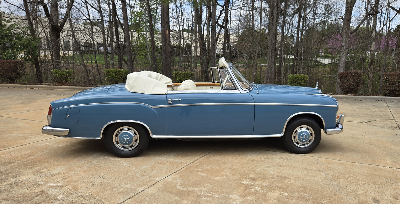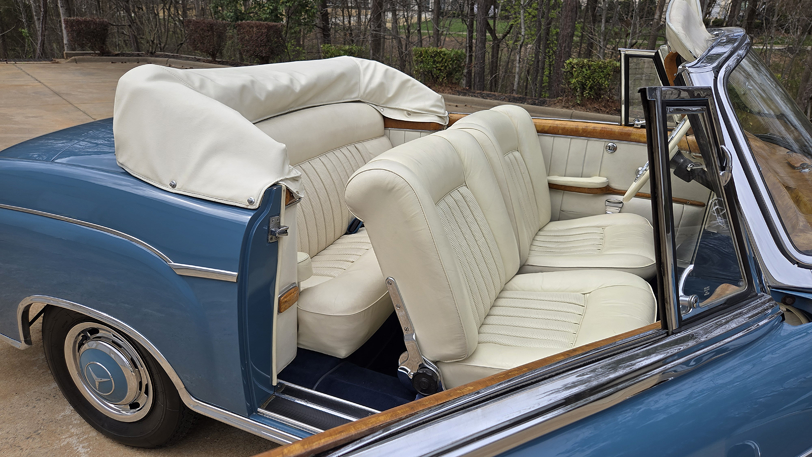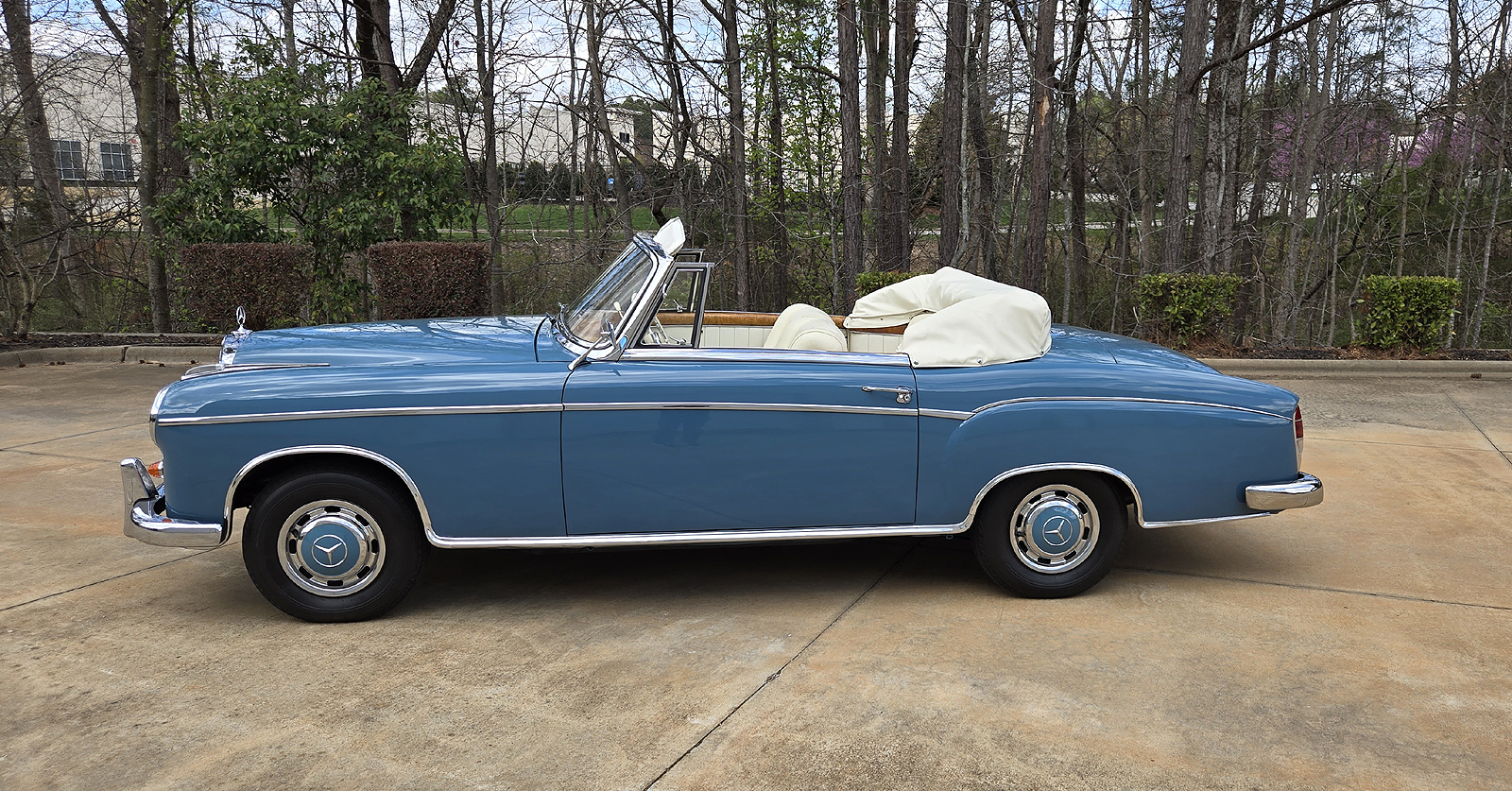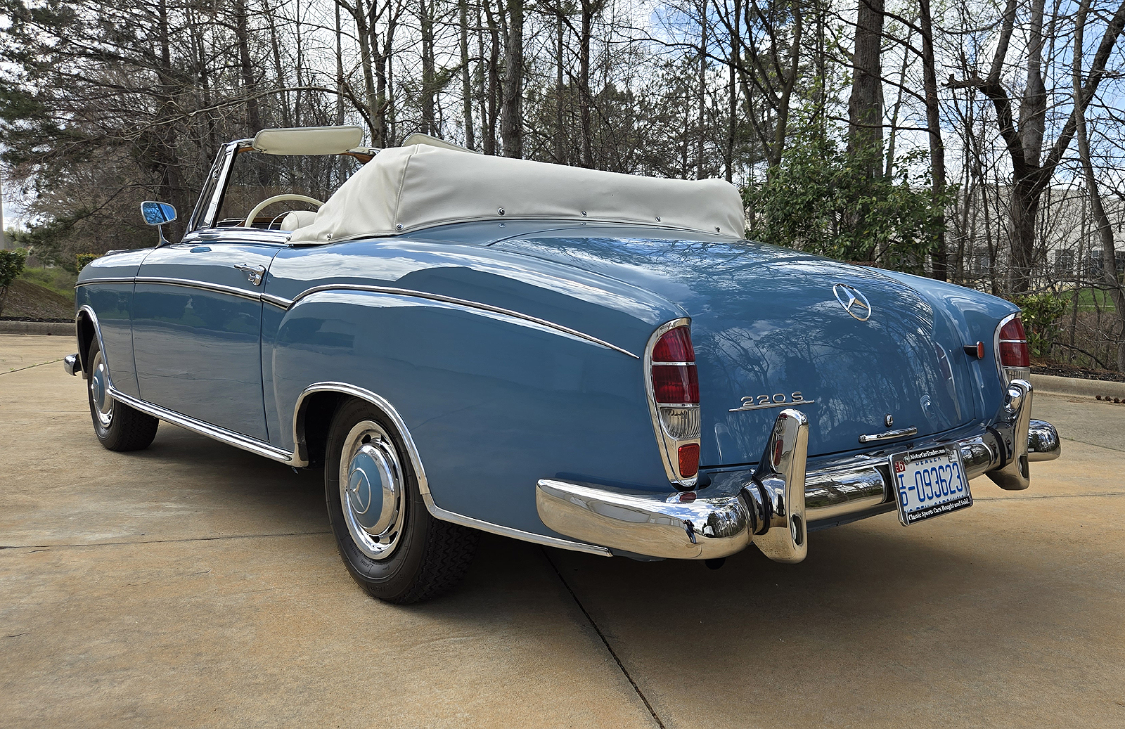 We drove this car extensively and about 400 plus miles, showing and driving the car at the 2025 Shelton Vineyards Mercedes-Benz show at highways speeds of 80mph. In addition, driving it to local car gatherings, as well as driving it around town. It is exceptional to drive. The column 4-speed shifter engages perfectly, and the clutch feels great with no shutter. The engine is quiet as can be with no valve train noises or unusual noises. In addition, the car has excellent power and can keep up with modern traffic but to be forewarned this car attracts a lot of attention. The power steering also feels strong and the car drives straight and does not wonder going down the road at all. This Ponton holds temperature well and the cream seats keep the car cool. The brakes on this car stop straight, as they should and it does not pull in either direction. The soft top has a nice zip outside window which provides a nice air floor when driving with the convertible top. The seats in this car are so unbelievably comfortable, so that when you are driving you actually forget that you are driving in a nearly 70-year-old Mercedes-Benz. There is adequate room for 4 adults in this car as well. This wonderful Mercedes-Benz 220S Cabriolet can be shown, but it is a high-level driver/show car and is a great driver’s car as it really shines nicely on the road. It needs and should be driven as all our cars need to be. The next owner will be sure to have plenty of miles of driving enjoyment and touring with this exceptional 1959 Mercedes 220S Cabriolet “Ponton.”