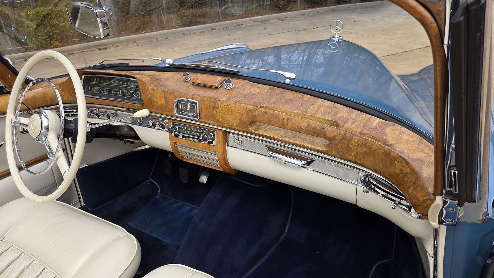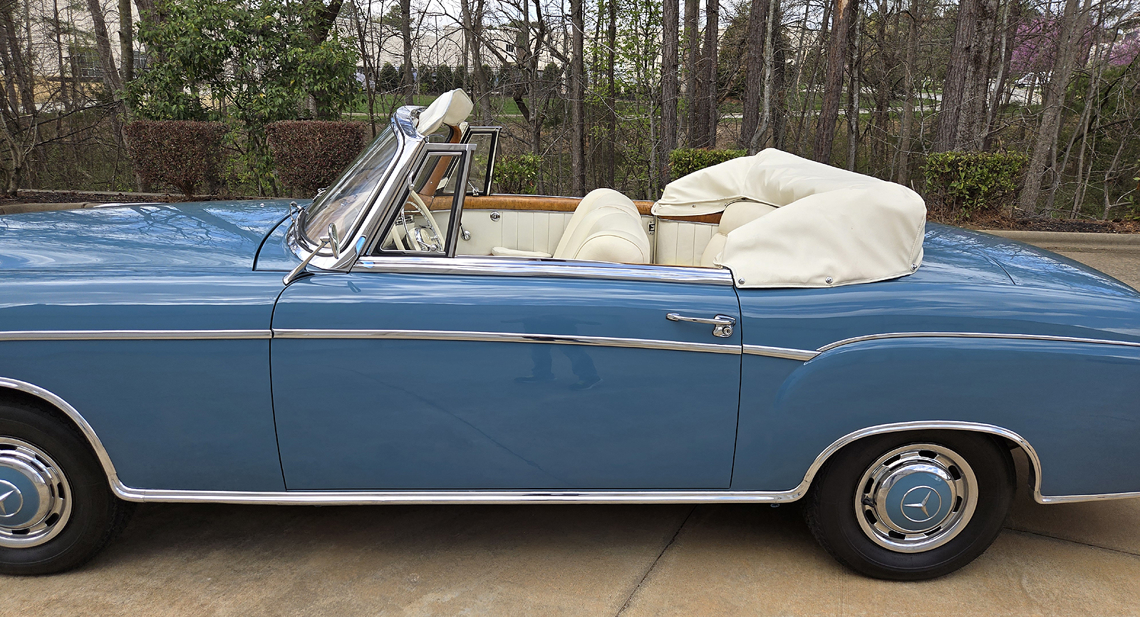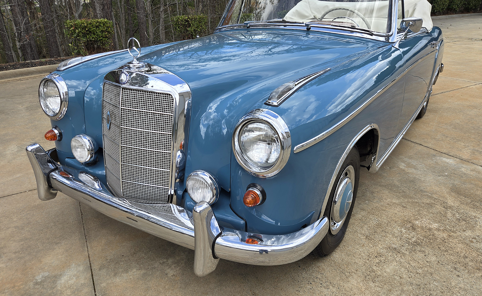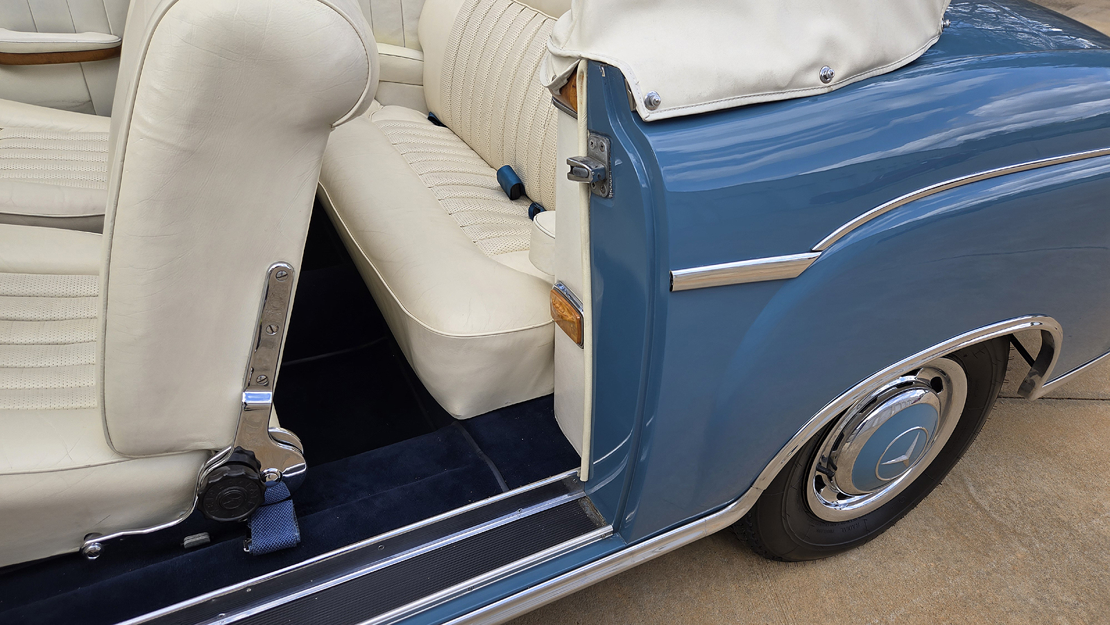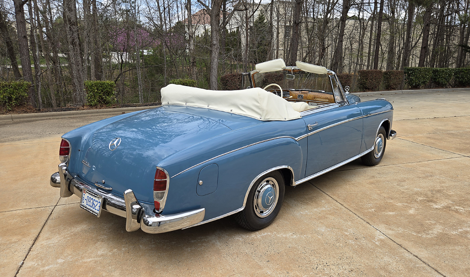 We drove this car extensively and about 400 plus miles, showing and driving the car at the 2025 Shelton Vineyards Mercedes-Benz show at highways speeds of 80mph. In addition, driving it to local car gatherings, as well as driving it around town. It is exceptional to drive. The column 4-speed shifter engages perfectly, and the clutch feels great with no shutter. The engine is quiet as can be with no valve train noises or unusual noises. In addition, the car has excellent power and can keep up with modern traffic but to be forewarned this car attracts a lot of attention. The power steering also feels strong and the car drives straight and does not wonder going down the road at all. This Ponton holds temperature well and the cream seats keep the car cool. The brakes on this car stop straight, as they should and it does not pull in either direction. The soft top has a nice zip outside window which provides a nice air floor when driving with the convertible top. The seats in this car are so unbelievably comfortable, so that when you are driving you actually forget that you are driving in a nearly 70-year-old Mercedes-Benz. There is adequate room for 4 adults in this car as well. This wonderful Mercedes-Benz 220S Cabriolet can be shown, but it is a high-level driver/show car and is a great driver’s car as it really shines nicely on the road. It needs and should be driven as all our cars need to be. The next owner will be sure to have plenty of miles of driving enjoyment and touring with this exceptional 1959 Mercedes 220S Cabriolet “Ponton.”