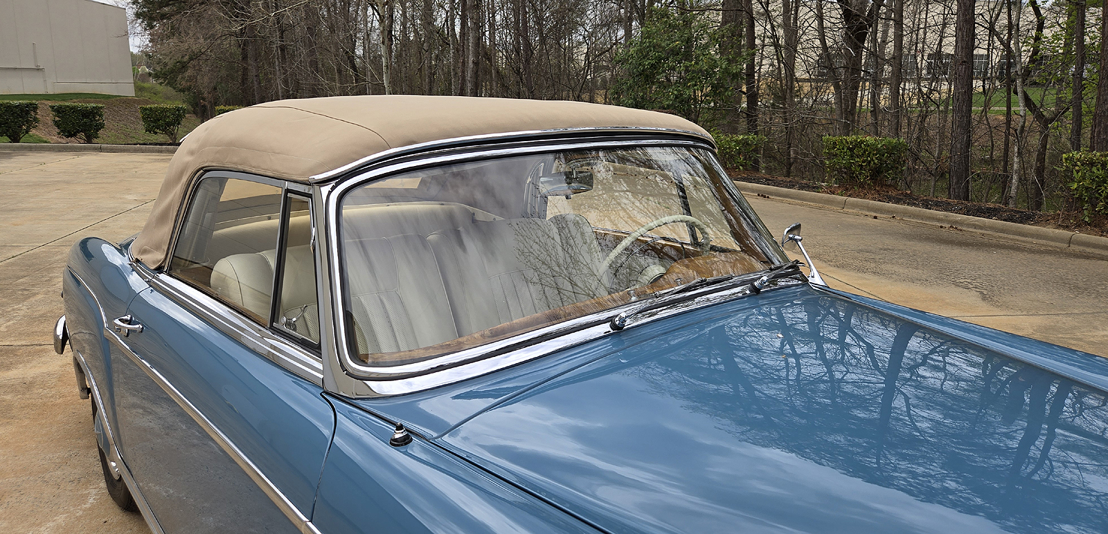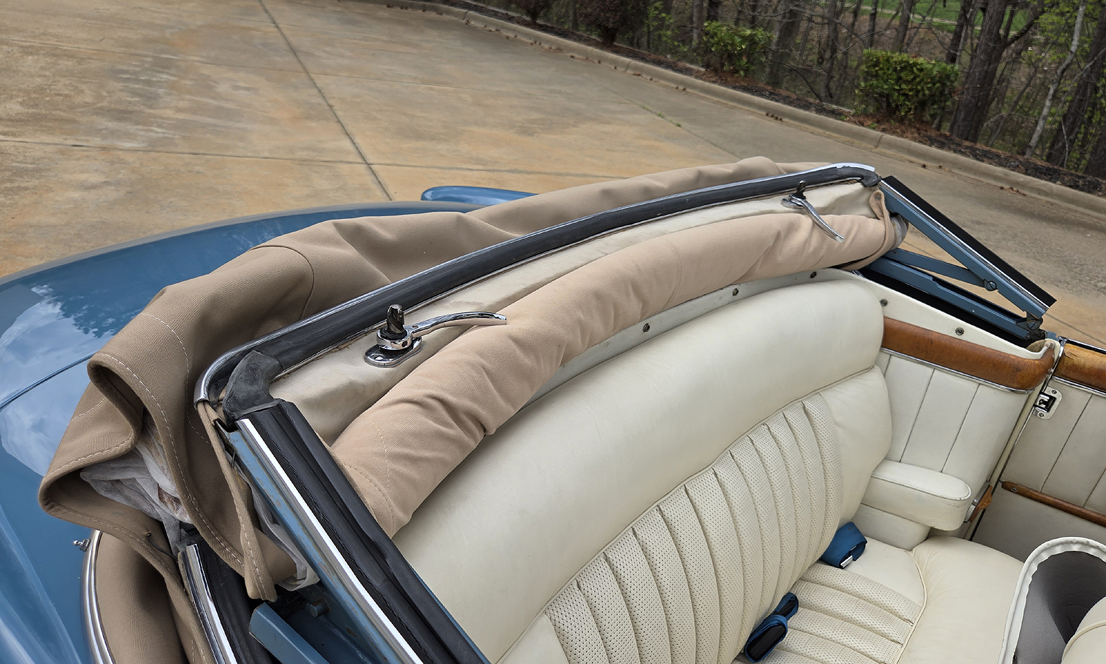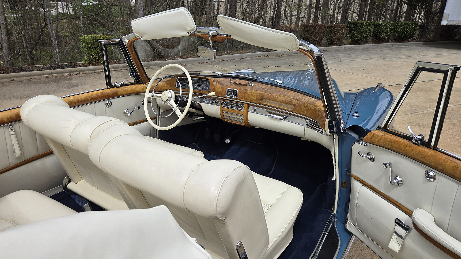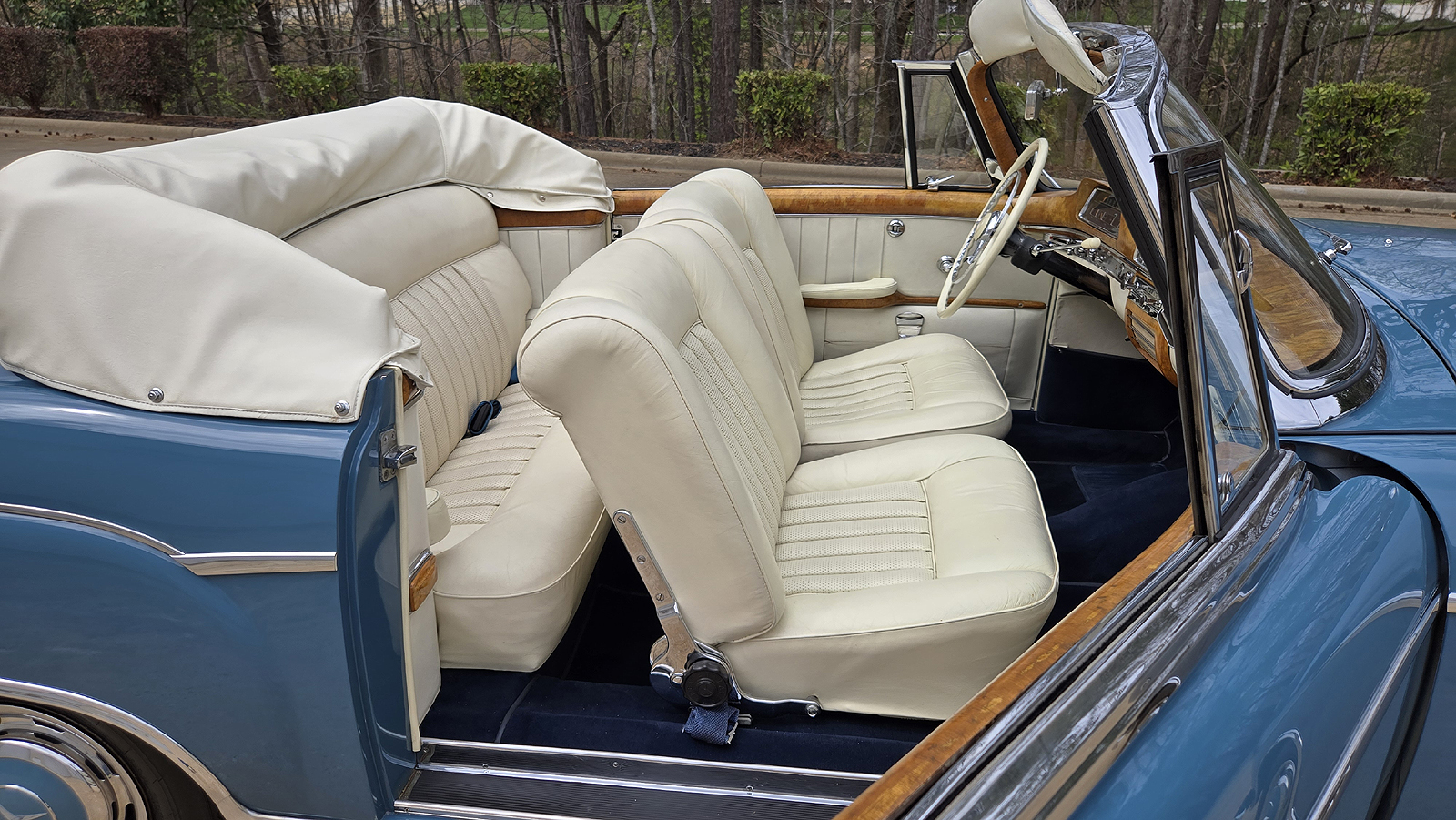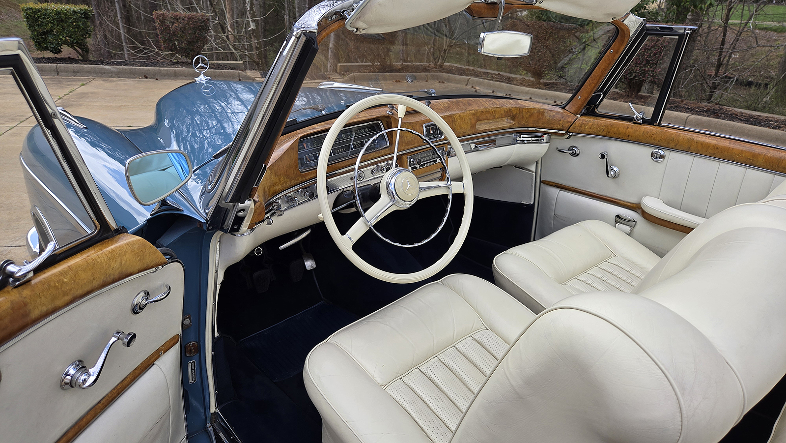We drove this car extensively and about 400 plus miles, showing and driving the car at the 2025 Shelton Vineyards Mercedes-Benz show at highways speeds of 80mph. In addition, driving it to local car gatherings, as well as driving it around town. It is exceptional to drive. The column 4-speed shifter engages perfectly, and the clutch feels great with no shutter. The engine is quiet as can be with no valve train noises or unusual noises. In addition, the car has excellent power and can keep up with modern traffic but to be forewarned this car attracts a lot of attention. The power steering also feels strong and the car drives straight and does not wonder going down the road at all. This Ponton holds temperature well and the cream seats keep the car cool. The brakes on this car stop straight, as they should and it does not pull in either direction. The soft top has a nice zip outside window which provides a nice air floor when driving with the convertible top. The seats in this car are so unbelievably comfortable, so that when you are driving you actually forget that you are driving in a nearly 70-year-old Mercedes-Benz. There is adequate room for 4 adults in this car as well. This wonderful Mercedes-Benz 220S Cabriolet can be shown, but it is a high-level driver/show car and is a great driver’s car as it really shines nicely on the road. It needs and should be driven as all our cars need to be. The next owner will be sure to have plenty of miles of driving enjoyment and touring with this exceptional 1959 Mercedes 220S Cabriolet “Ponton.”