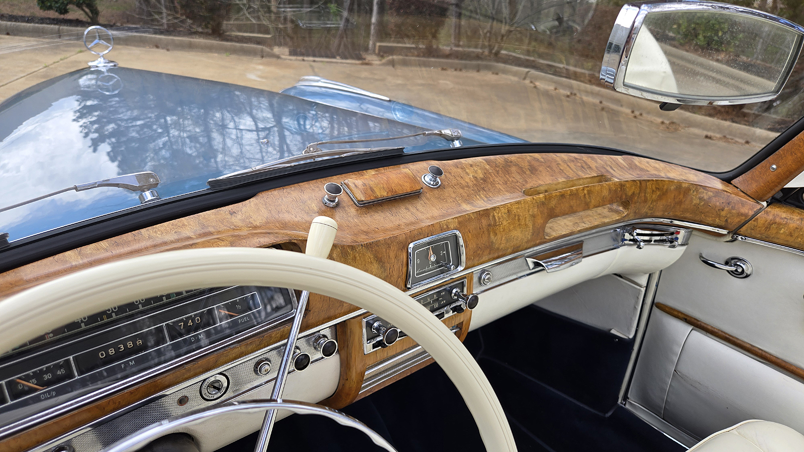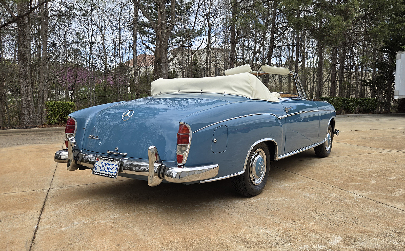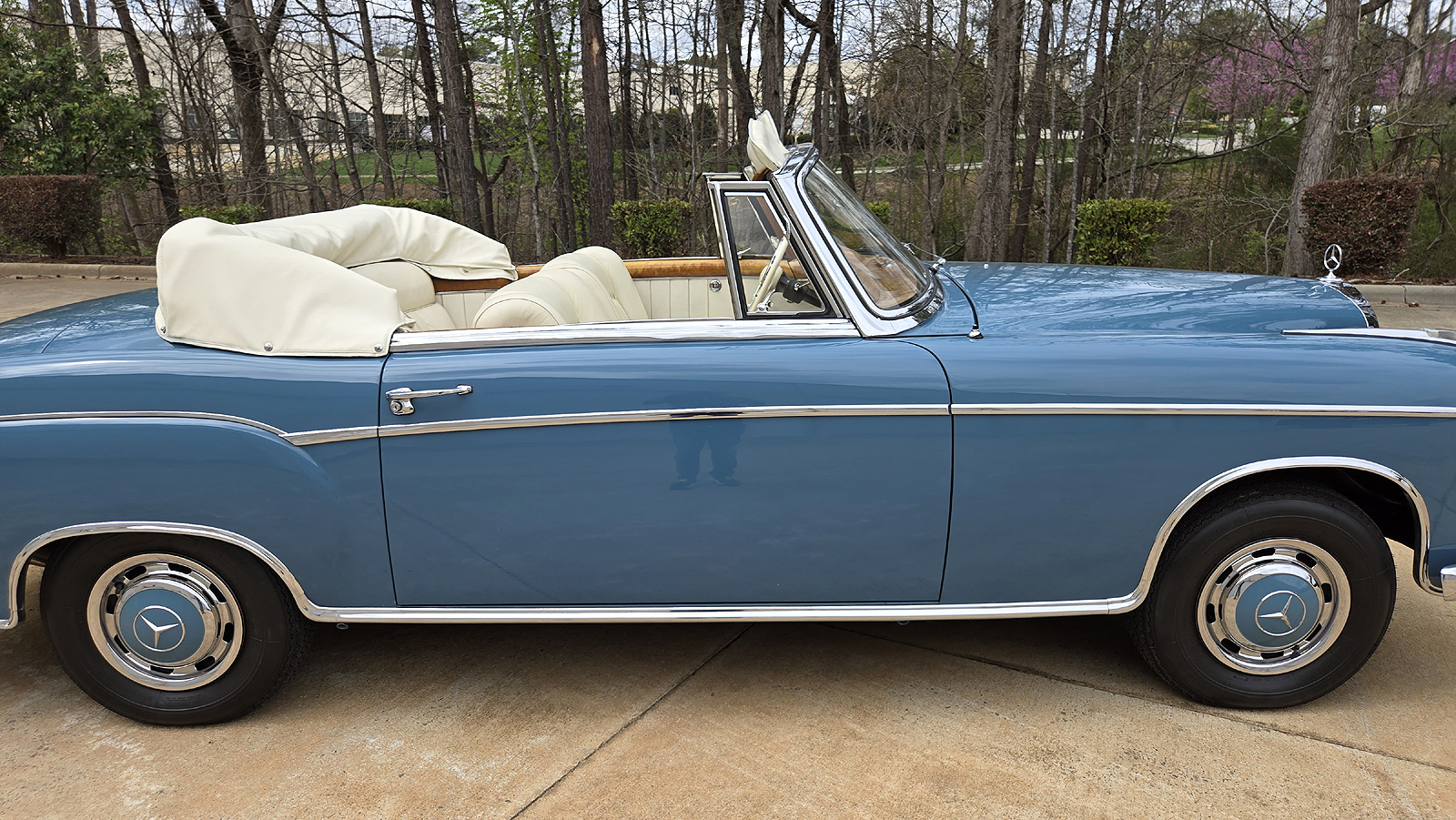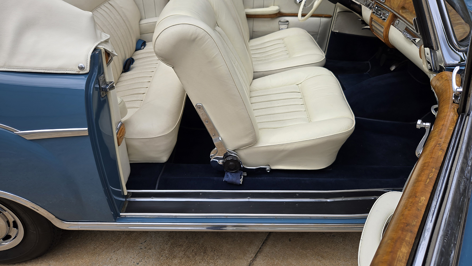 We drove this car extensively and about 400 plus miles, showing and driving the car at the 2025 Shelton Vineyards Mercedes-Benz show at highways speeds of 80mph. In addition, driving it to local car gatherings, as well as driving it around town. It is exceptional to drive. The column 4-speed shifter engages perfectly, and the clutch feels great with no shutter. The engine is quiet as can be with no valve train noises or unusual noises. In addition, the car has excellent power and can keep up with modern traffic but to be forewarned this car attracts a lot of attention. The power steering also feels strong and the car drives straight and does not wonder going down the road at all. This Ponton holds temperature well and the cream seats keep the car cool. The brakes on this car stop straight, as they should and it does not pull in either direction. The soft top has a nice zip outside window which provides a nice air floor when driving with the convertible top. The seats in this car are so unbelievably comfortable, so that when you are driving you actually forget that you are driving in a nearly 70-year-old Mercedes-Benz. There is adequate room for 4 adults in this car as well. This wonderful Mercedes-Benz 220S Cabriolet can be shown, but it is a high-level driver/show car and is a great driver’s car as it really shines nicely on the road. It needs and should be driven as all our cars need to be. The next owner will be sure to have plenty of miles of driving enjoyment and touring with this exceptional 1959 Mercedes 220S Cabriolet “Ponton.”
