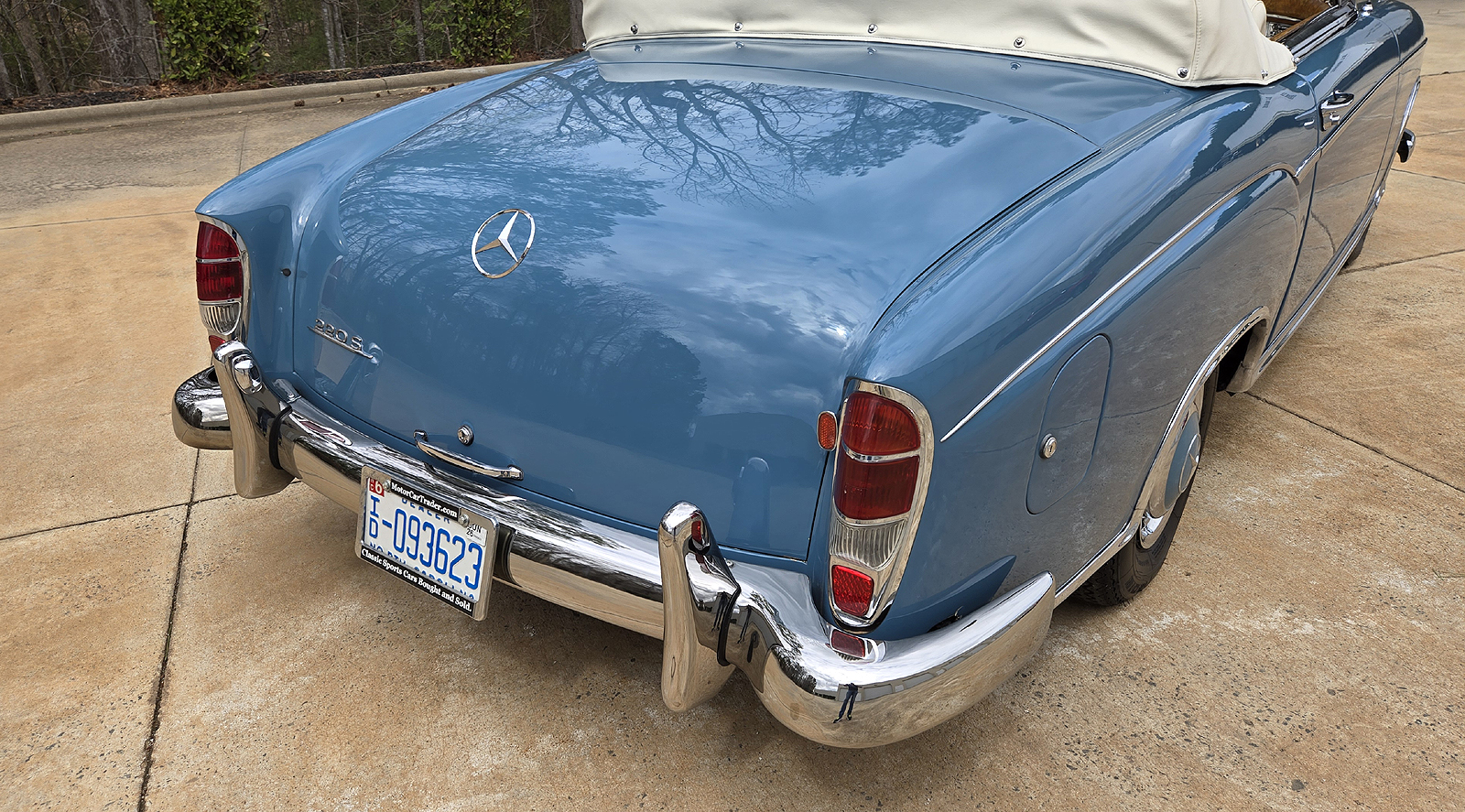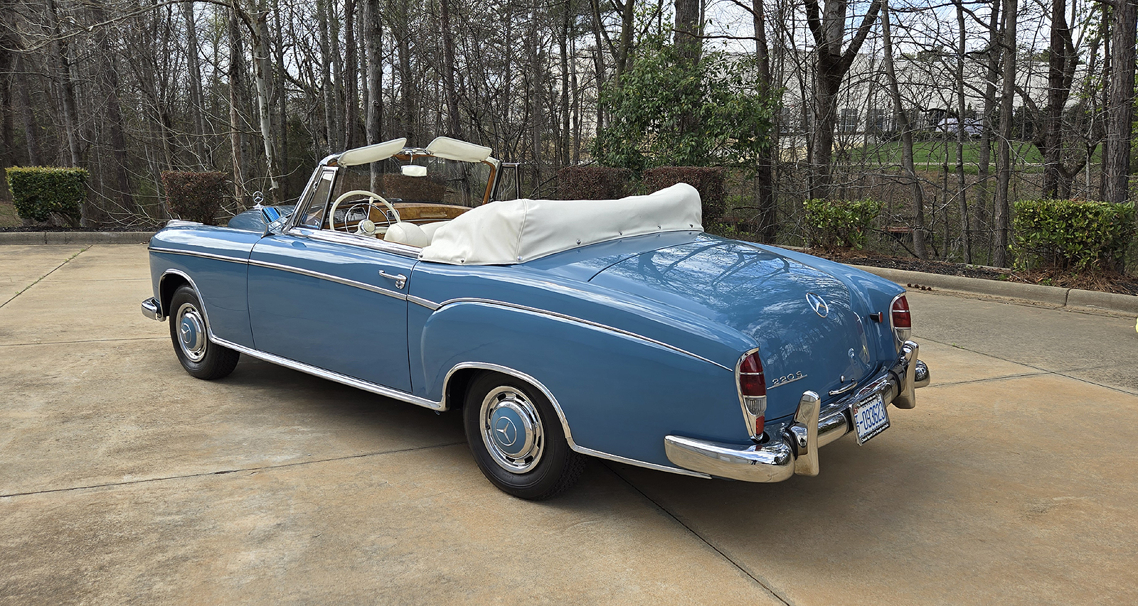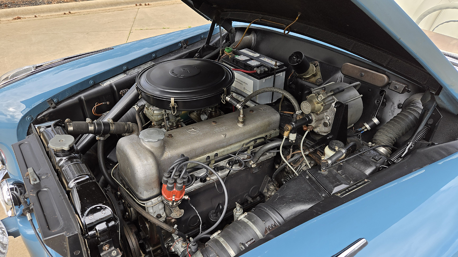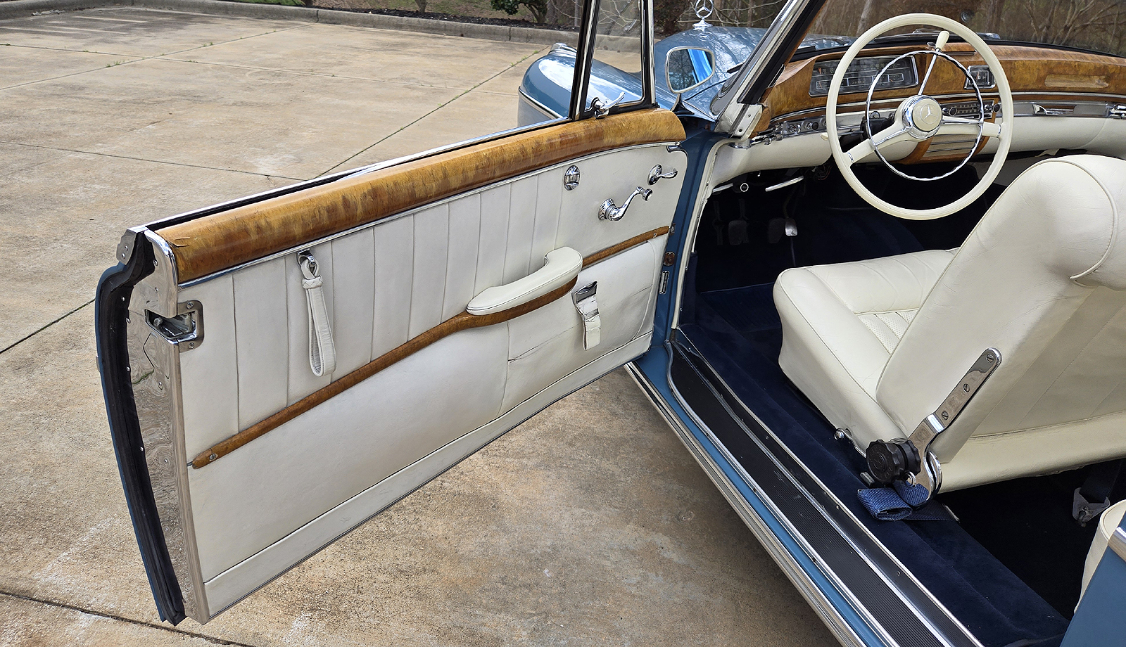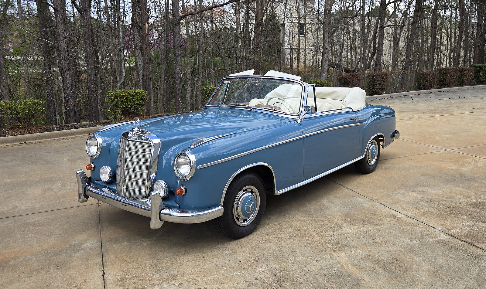 We drove this car extensively and about 400 plus miles, showing and driving the car at the 2025 Shelton Vineyards Mercedes-Benz show at highways speeds of 80mph. In addition, driving it to local car gatherings, as well as driving it around town. It is exceptional to drive. The column 4-speed shifter engages perfectly, and the clutch feels great with no shutter. The engine is quiet as can be with no valve train noises or unusual noises. In addition, the car has excellent power and can keep up with modern traffic but to be forewarned this car attracts a lot of attention. The power steering also feels strong and the car drives straight and does not wonder going down the road at all. This Ponton holds temperature well and the cream seats keep the car cool. The brakes on this car stop straight, as they should and it does not pull in either direction. The soft top has a nice zip outside window which provides a nice air floor when driving with the convertible top. The seats in this car are so unbelievably comfortable, so that when you are driving you actually forget that you are driving in a nearly 70-year-old Mercedes-Benz. There is adequate room for 4 adults in this car as well. This wonderful Mercedes-Benz 220S Cabriolet can be shown, but it is a high-level driver/show car and is a great driver’s car as it really shines nicely on the road. It needs and should be driven as all our cars need to be. The next owner will be sure to have plenty of miles of driving enjoyment and touring with this exceptional 1959 Mercedes 220S Cabriolet “Ponton.”