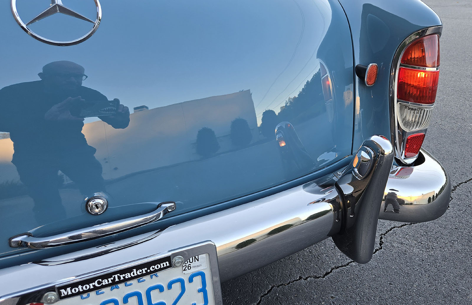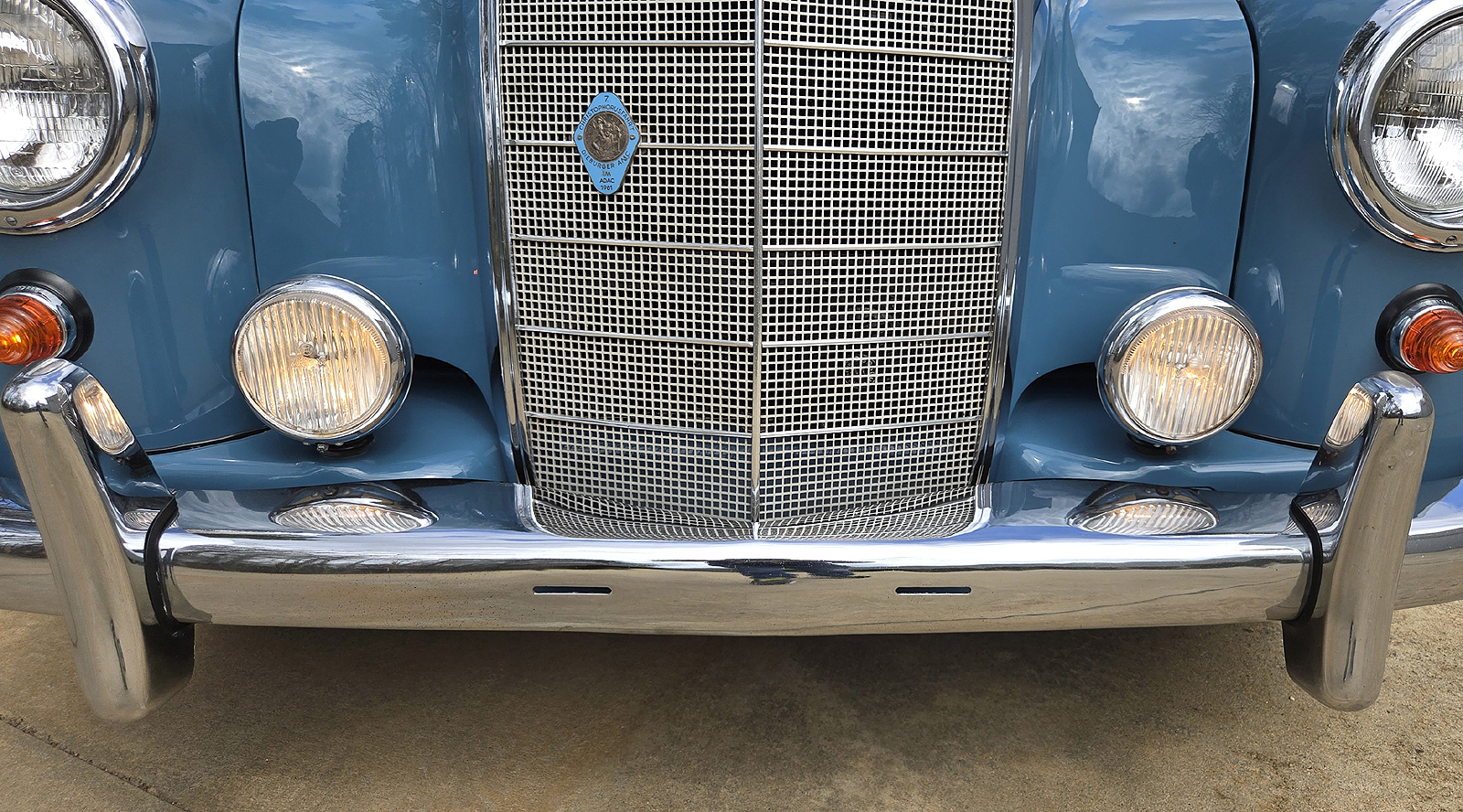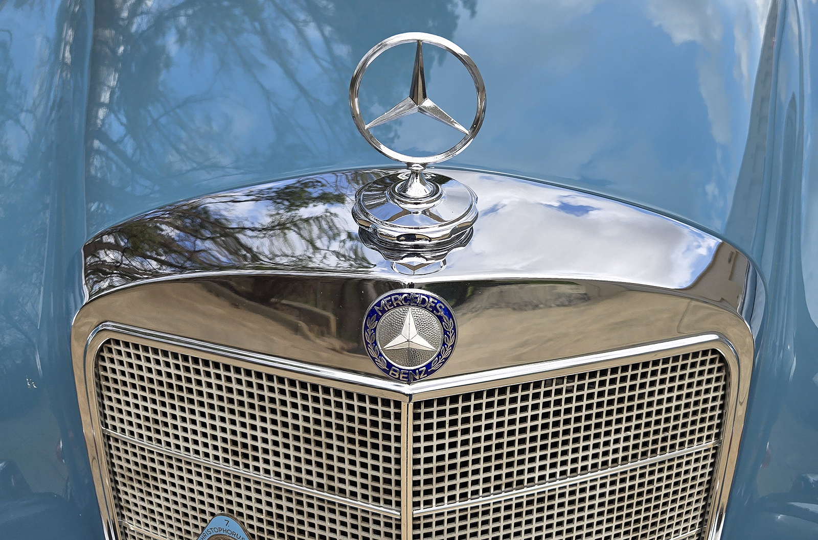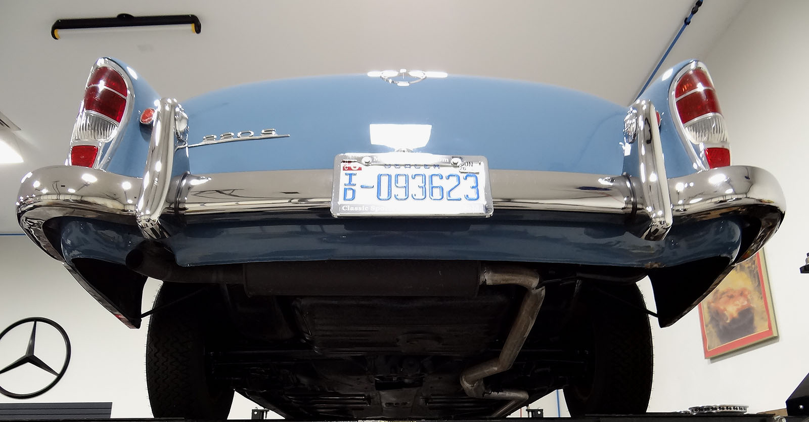 We acquired this Mercedes Ponton from a Mercedes collector. The prior owner took excellent care of this car and presented the car at several car shows. Since our purchase, we have completed some work to improve the overall condition of the car both cosmetically and mechanically. We purchased new Michelin 185 R13 radial tires. The new tires were balanced on the wheels, and an alignment was performed. In addition, we had to recore the original radiator, as it had a few leaks. A timing adjustment was performed, and the original carburetors were tuned and adjusted as needed. A tune up was done with spark plugs installed. We did check the compression when the spark plugs were replaced, and the result was excellent of 142 psi to 154 psi across all 6 cylinders. Furthermore, the driver side window mechanism needed repair and to be welded, so we properly addressed this as well. A new manual auxiliary fuel pump was installed for easier starting function. We installed a new rear end seal, where the drive shaft meets the rear differential as it was leaking. This Mercedes-Benz went through an extensive detail with the interior cleaned, leather extensively refreshed/protected and cleaned. The exterior of the car was detailed, buffed and polished as well. All chrome on the car was polished by hand. The canvas soft top was also cleaned with fabric cleaner. Lastly, the underside was wiped down and cleaned, where there is no rust anywhere on this gorgeous Mercedes 220S.