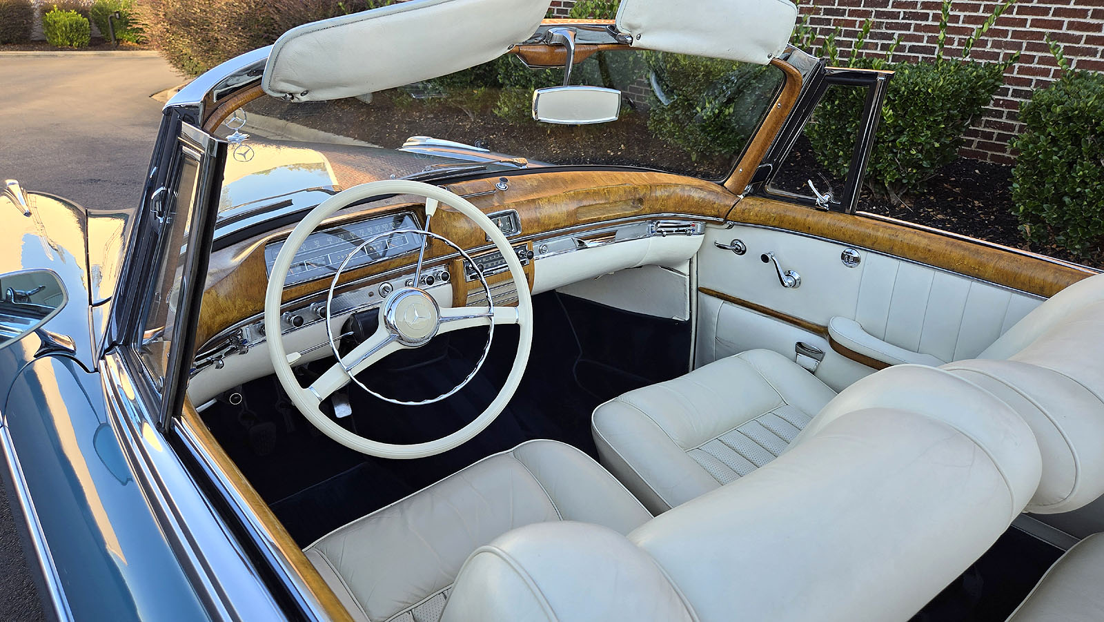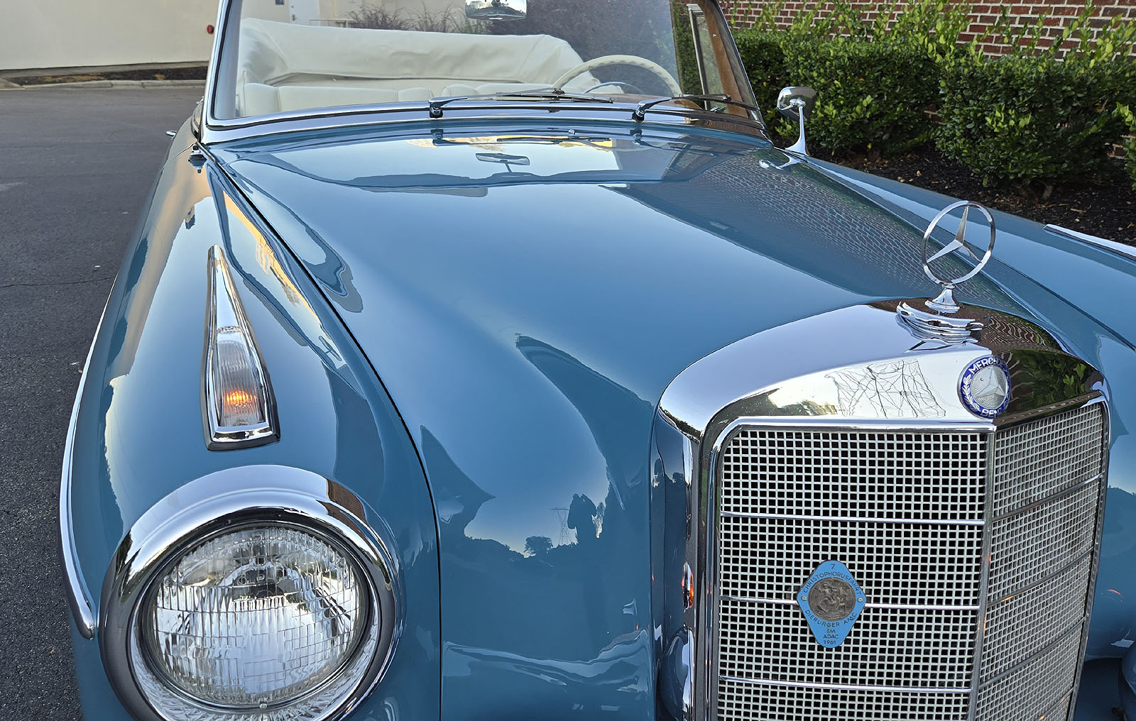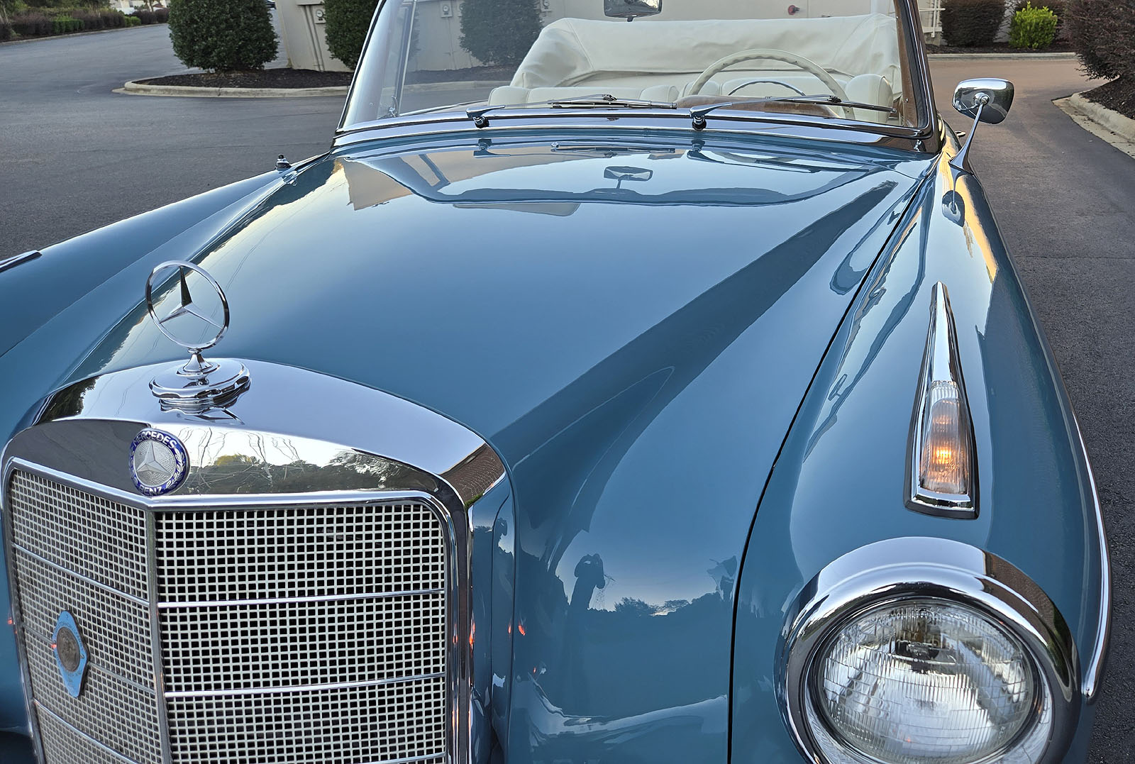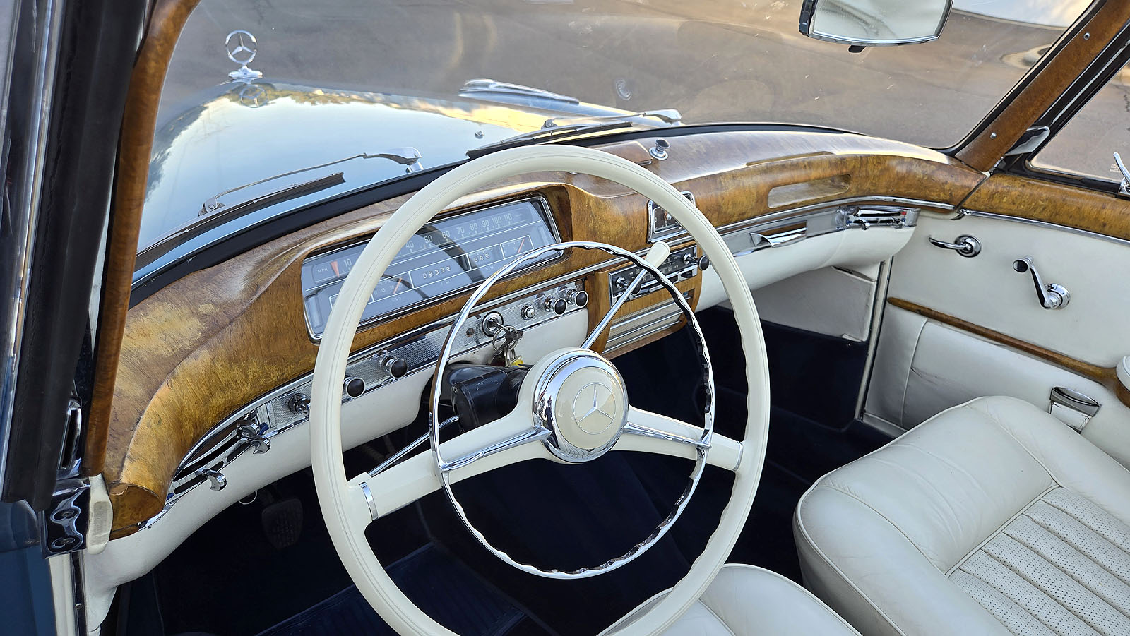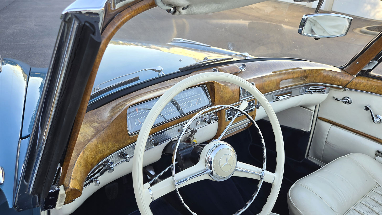 We drove this car extensively and about 300 plus miles, showing and driving the car at the 2025 Shelton Vineyards Mercedes-Benz show at highways speeds of 80mph. In addition, driving it to local car gatherings, as well as driving it around town. It is exceptional to drive. The column 4-speed shifter engages perfectly, and clutch feels great with no shutter. The engine is quiet as can be with no valve train noises or unusual noises. In addition, the car has excellent power and can keep up with modern traffic but to be forewarned this car attracts a lot of attention. The power steering also feels strong and the car drives straight and does not wonder going down the road at all. This Ponton holds temperature well and the cream seats keep the car cool. The brakes on this car stop straight, as they should and it does not pull in either direction. The soft top has a nice zip outside window which provides a nice air floor when driving with the convertible top. The seats in this car are so unbelievably comfortable, so that when you are driving you actual forget that you are driving in a nearly 70-year-old Mercedes-Benz. There is adequate room for 4 adults in this car as well. This wonderful Mercedes-Benz 220S Cabriolet can be shown, but it is a high-level driver/show car and is a great driver’s car as it really shines nicely on the road. It needs and should be driven as all our cars need to be. The next owner will be sure to have plenty of miles of driving enjoyment and touring with this exceptional 1959 Mercedes 220S Cabriolet “Ponton.”
