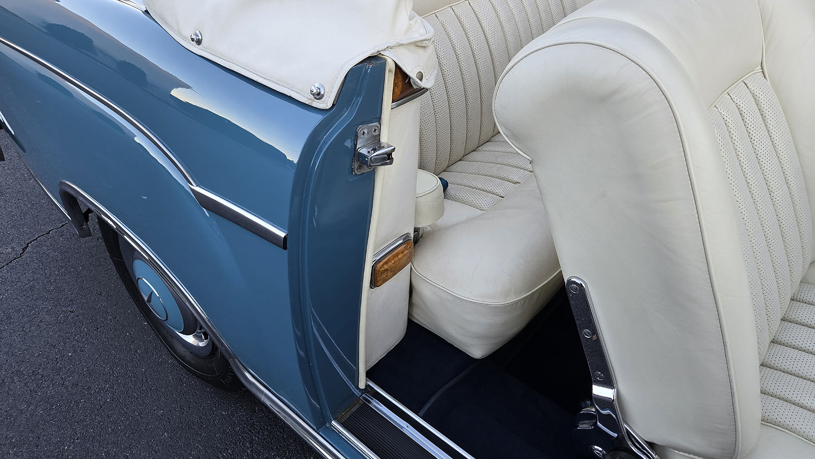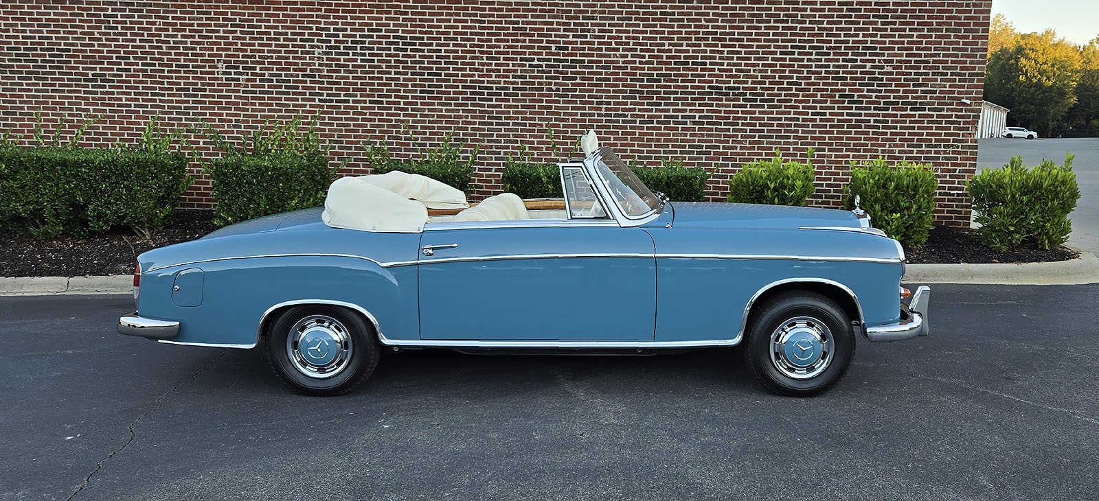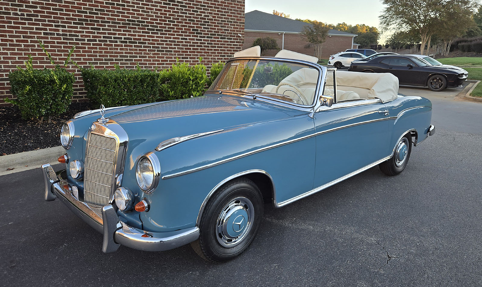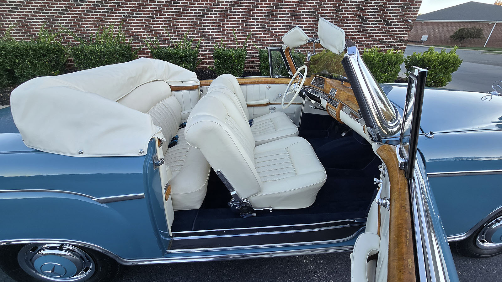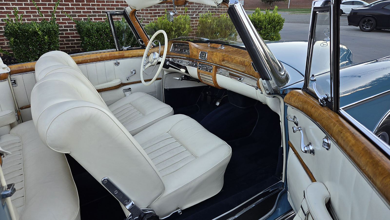 We drove this car extensively and about 300 plus miles, showing and driving the car at the 2025 Shelton Vineyards Mercedes-Benz show at highways speeds of 80mph. In addition, driving it to local car gatherings, as well as driving it around town. It is exceptional to drive. The column 4-speed shifter engages perfectly, and clutch feels great with no shutter. The engine is quiet as can be with no valve train noises or unusual noises. In addition, the car has excellent power and can keep up with modern traffic but to be forewarned this car attracts a lot of attention. The power steering also feels strong and the car drives straight and does not wonder going down the road at all. This Ponton holds temperature well and the cream seats keep the car cool. The brakes on this car stop straight, as they should and it does not pull in either direction. The soft top has a nice zip outside window which provides a nice air floor when driving with the convertible top. The seats in this car are so unbelievably comfortable, so that when you are driving you actual forget that you are driving in a nearly 70-year-old Mercedes-Benz. There is adequate room for 4 adults in this car as well. This wonderful Mercedes-Benz 220S Cabriolet can be shown, but it is a high-level driver/show car and is a great driver’s car as it really shines nicely on the road. It needs and should be driven as all our cars need to be. The next owner will be sure to have plenty of miles of driving enjoyment and touring with this exceptional 1959 Mercedes 220S Cabriolet “Ponton.”