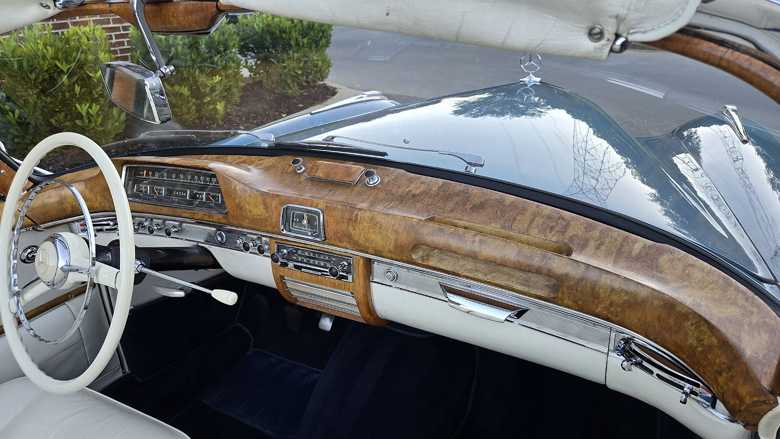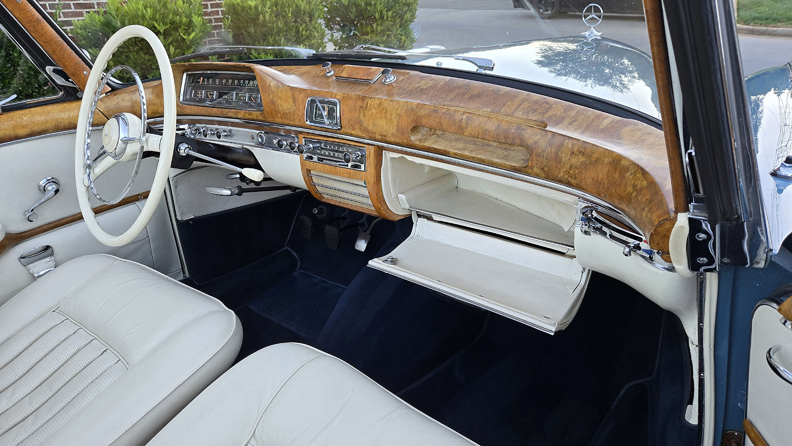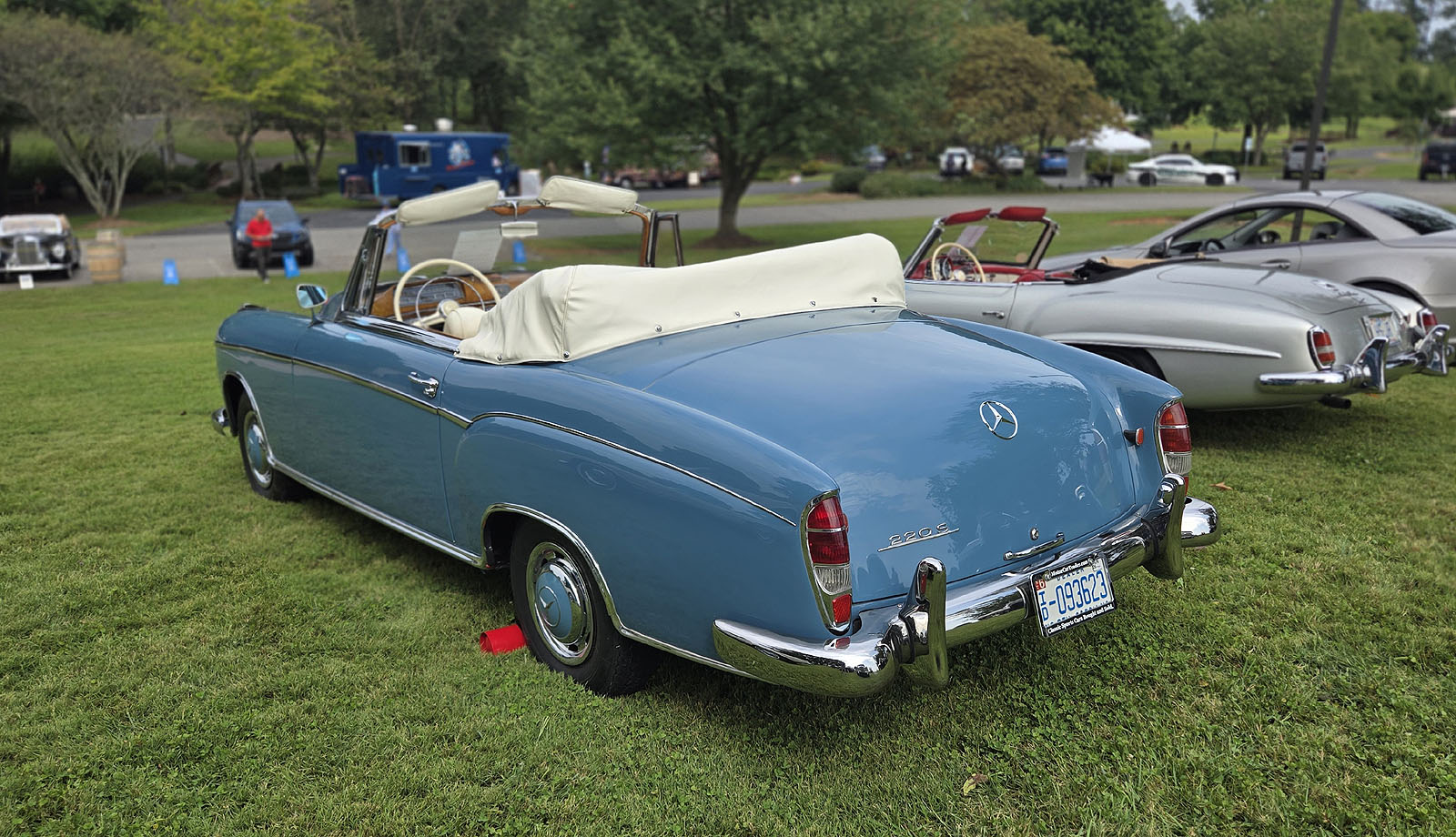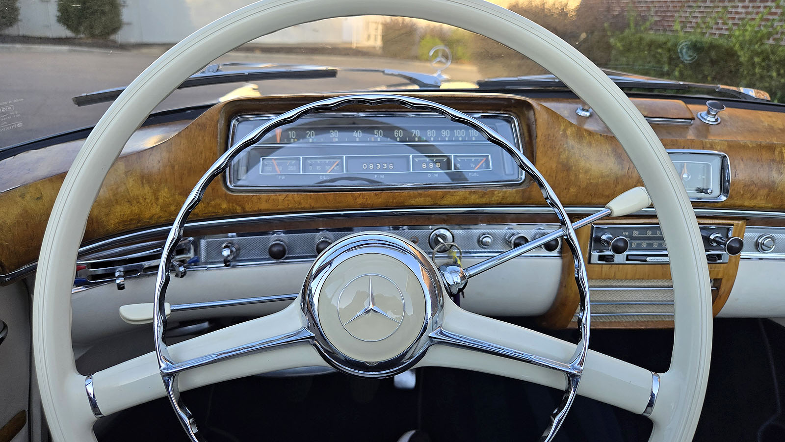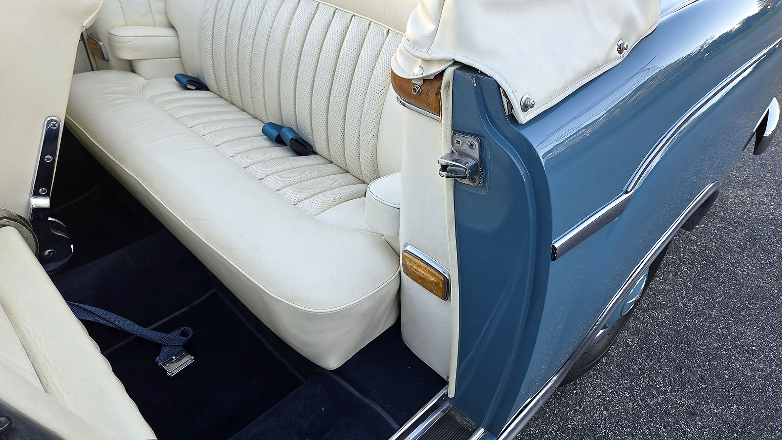 We drove this car extensively and about 300 plus miles, showing and driving the car at the 2025 Shelton Vineyards Mercedes-Benz show at highways speeds of 80mph. In addition, driving it to local car gatherings, as well as driving it around town. It is exceptional to drive. The column 4-speed shifter engages perfectly, and clutch feels great with no shutter. The engine is quiet as can be with no valve train noises or unusual noises. In addition, the car has excellent power and can keep up with modern traffic but to be forewarned this car attracts a lot of attention. The power steering also feels strong and the car drives straight and does not wonder going down the road at all. This Ponton holds temperature well and the cream seats keep the car cool. The brakes on this car stop straight, as they should and it does not pull in either direction. The soft top has a nice zip outside window which provides a nice air floor when driving with the convertible top. The seats in this car are so unbelievably comfortable, so that when you are driving you actual forget that you are driving in a nearly 70-year-old Mercedes-Benz. There is adequate room for 4 adults in this car as well. This wonderful Mercedes-Benz 220S Cabriolet can be shown, but it is a high-level driver/show car and is a great driver’s car as it really shines nicely on the road. It needs and should be driven as all our cars need to be. The next owner will be sure to have plenty of miles of driving enjoyment and touring with this exceptional 1959 Mercedes 220S Cabriolet “Ponton.”