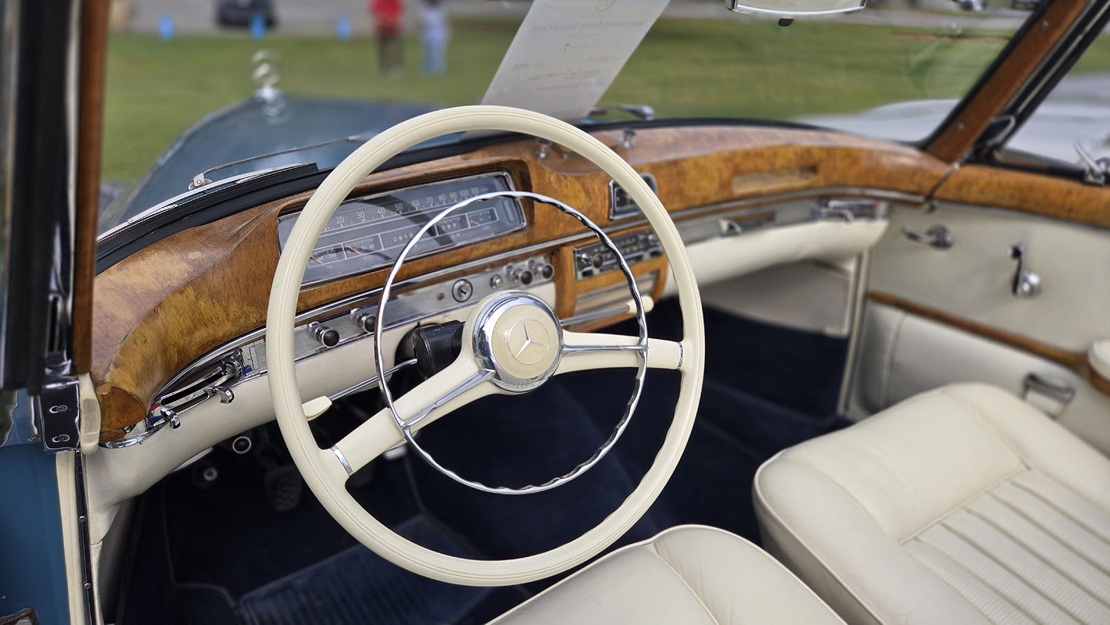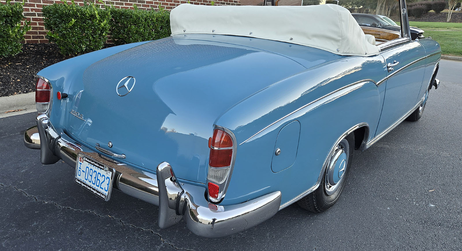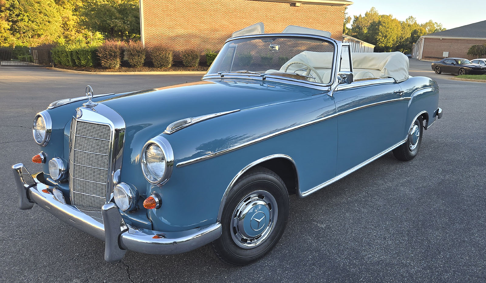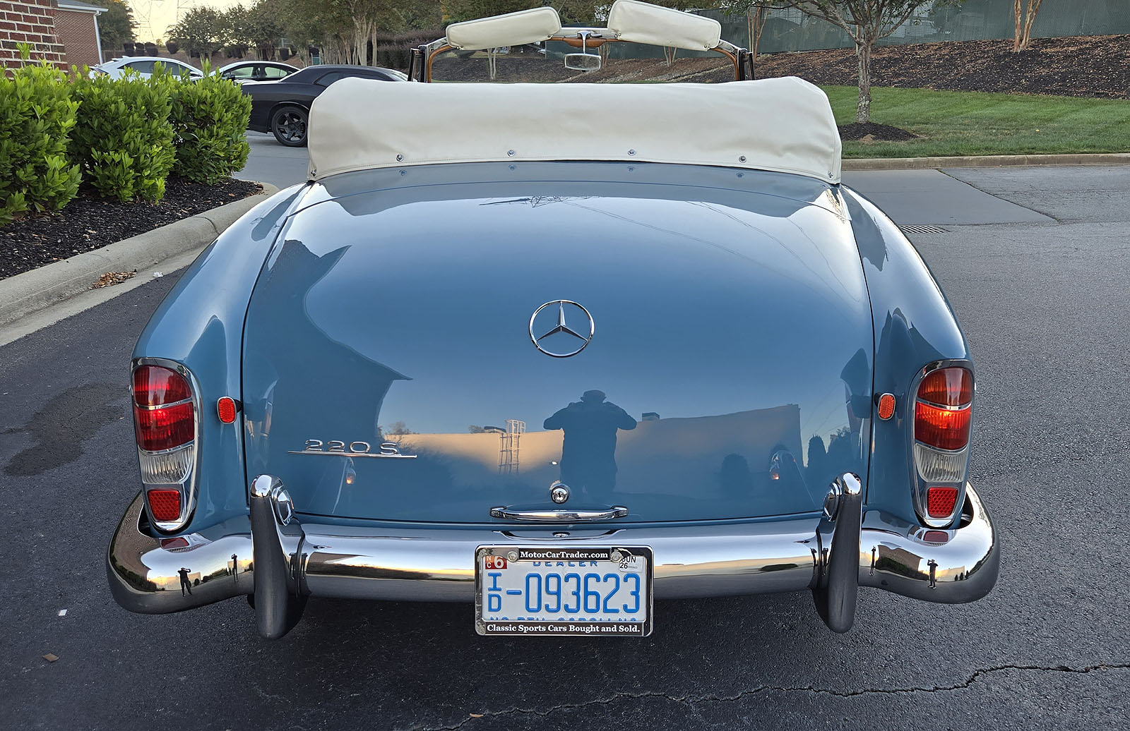 We drove this car extensively and about 300 plus miles, showing and driving the car at the 2025 Shelton Vineyards Mercedes-Benz show at highways speeds of 80mph. In addition, driving it to local car gatherings, as well as driving it around town. It is exceptional to drive. The column 4-speed shifter engages perfectly, and clutch feels great with no shutter. The engine is quiet as can be with no valve train noises or unusual noises. In addition, the car has excellent power and can keep up with modern traffic but to be forewarned this car attracts a lot of attention. The power steering also feels strong and the car drives straight and does not wonder going down the road at all. This Ponton holds temperature well and the cream seats keep the car cool. The brakes on this car stop straight, as they should and it does not pull in either direction. The soft top has a nice zip outside window which provides a nice air floor when driving with the convertible top. The seats in this car are so unbelievably comfortable, so that when you are driving you actual forget that you are driving in a nearly 70-year-old Mercedes-Benz. There is adequate room for 4 adults in this car as well. This wonderful Mercedes-Benz 220S Cabriolet can be shown, but it is a high-level driver/show car and is a great driver’s car as it really shines nicely on the road. It needs and should be driven as all our cars need to be. The next owner will be sure to have plenty of miles of driving enjoyment and touring with this exceptional 1959 Mercedes 220S Cabriolet “Ponton.”
