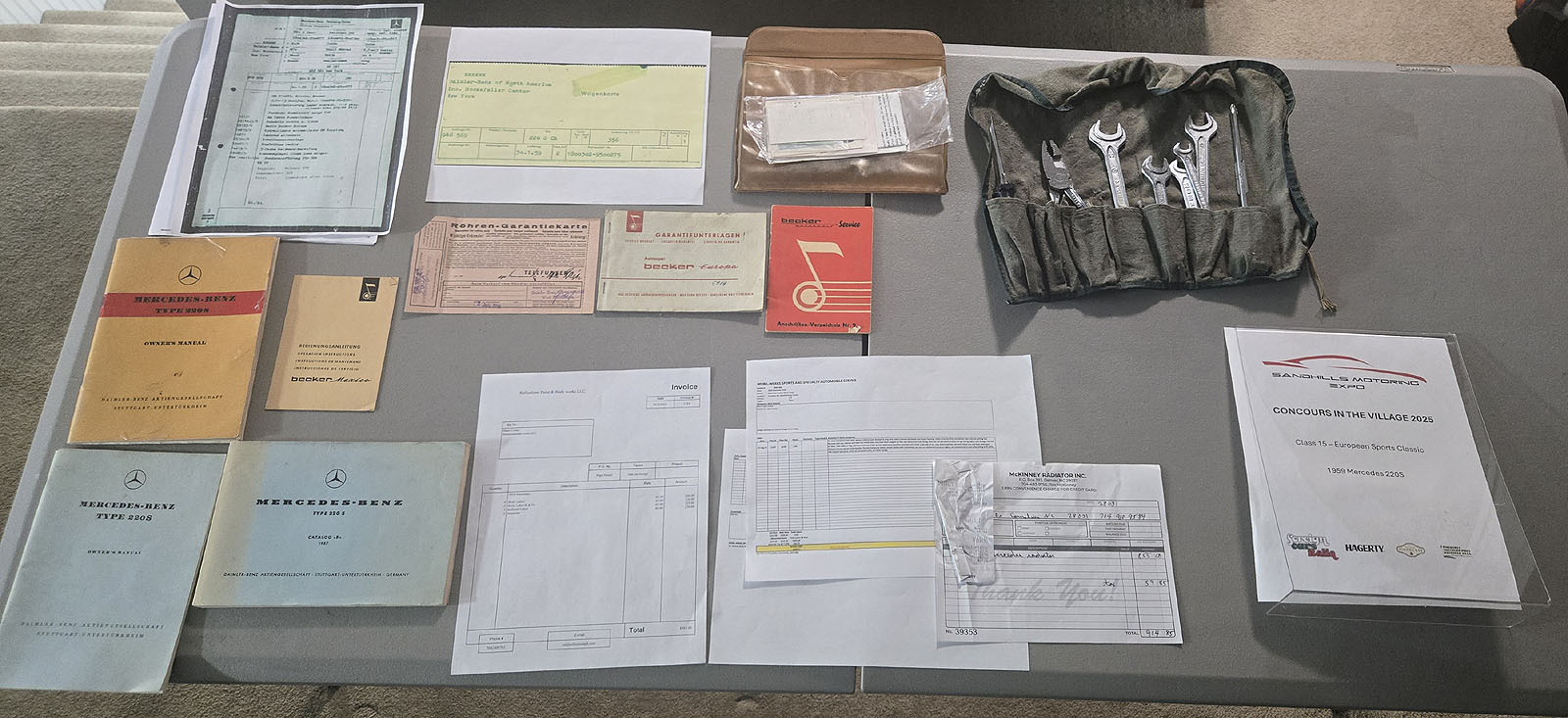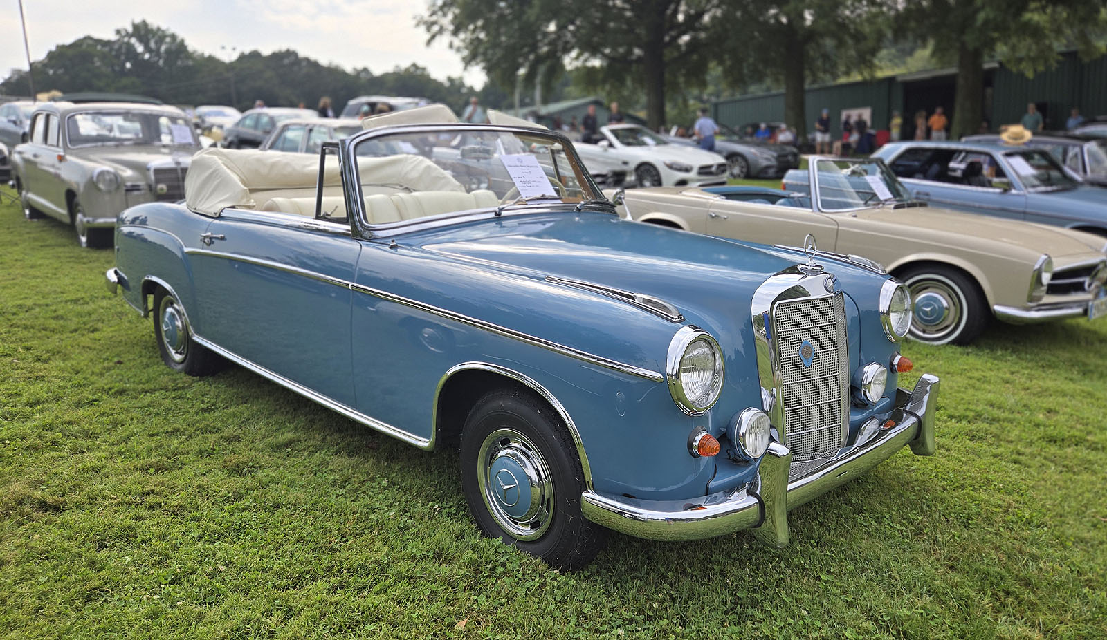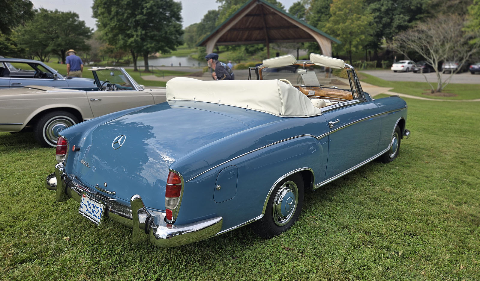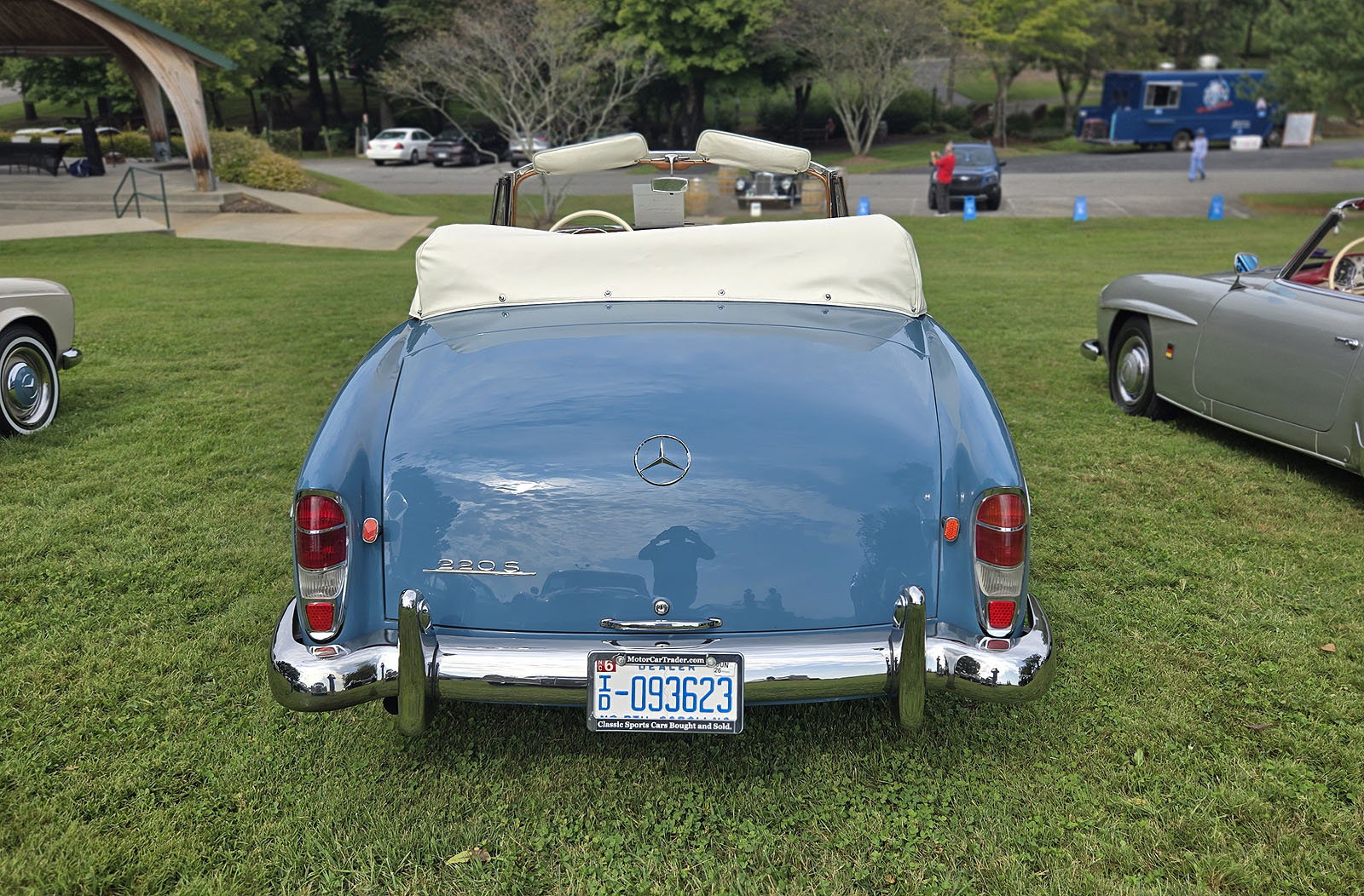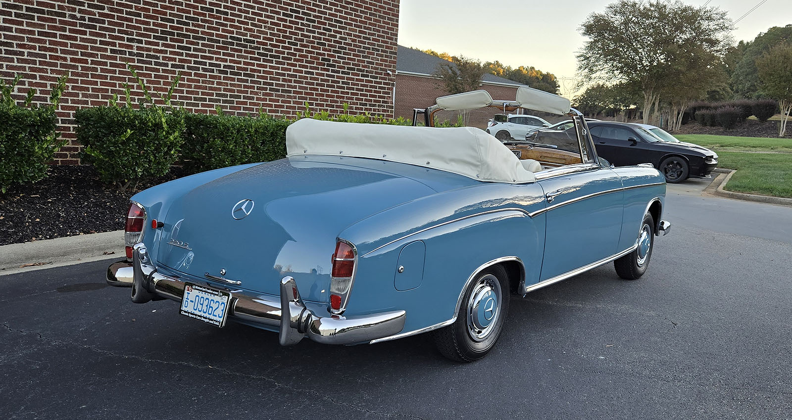 We drove this car extensively and about 300 plus miles, showing and driving the car at the 2025 Shelton Vineyards Mercedes-Benz show at highways speeds of 80mph. In addition, driving it to local car gatherings, as well as driving it around town. It is exceptional to drive. The column 4-speed shifter engages perfectly, and clutch feels great with no shutter. The engine is quiet as can be with no valve train noises or unusual noises. In addition, the car has excellent power and can keep up with modern traffic but to be forewarned this car attracts a lot of attention. The power steering also feels strong and the car drives straight and does not wonder going down the road at all. This Ponton holds temperature well and the cream seats keep the car cool. The brakes on this car stop straight, as they should and it does not pull in either direction. The soft top has a nice zip outside window which provides a nice air floor when driving with the convertible top. The seats in this car are so unbelievably comfortable, so that when you are driving you actual forget that you are driving in a nearly 70-year-old Mercedes-Benz. There is adequate room for 4 adults in this car as well. This wonderful Mercedes-Benz 220S Cabriolet can be shown, but it is a high-level driver/show car and is a great driver’s car as it really shines nicely on the road. It needs and should be driven as all our cars need to be. The next owner will be sure to have plenty of miles of driving enjoyment and touring with this exceptional 1959 Mercedes 220S Cabriolet “Ponton.”