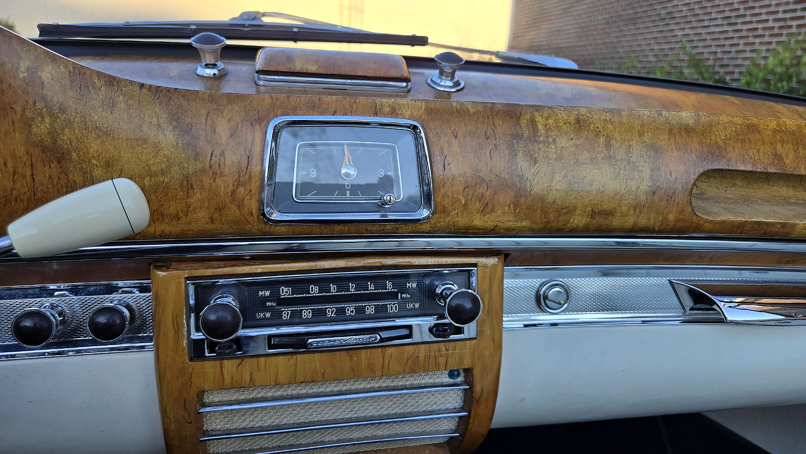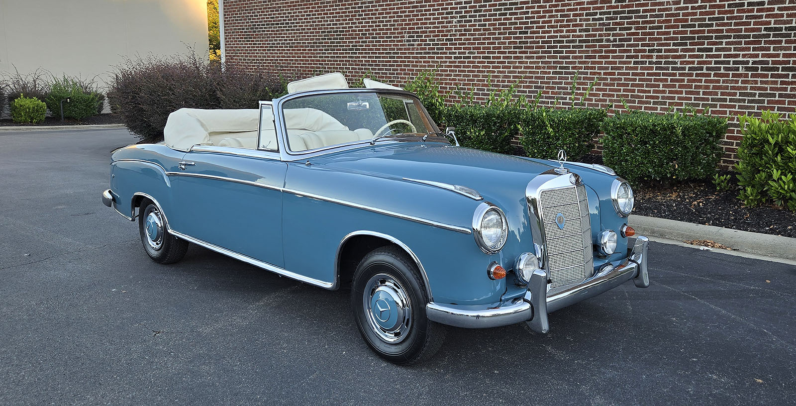 The Mercedes-Benz 220S Cabriolet was introduced in 1956. The two door open top variant of the W180 220 S, the cabriolet was initially powered by a 99hp 2.2L inline 6 engine, yet in 1957 it received a more powerful 105hp unit. The 220S Cabriolet was built until 1959.External changes were minimal, with the 220 S receiving a one-piece front bumper, down from a three piece, and a pair of solid chrome strips running under its doors in place of twin chrome and rubber ones. The most obvious difference was the addition of a fine, interrupted chrome accent strip running along the fenders and doors. The 220 S retained the 4-speed column shift manual transmission.